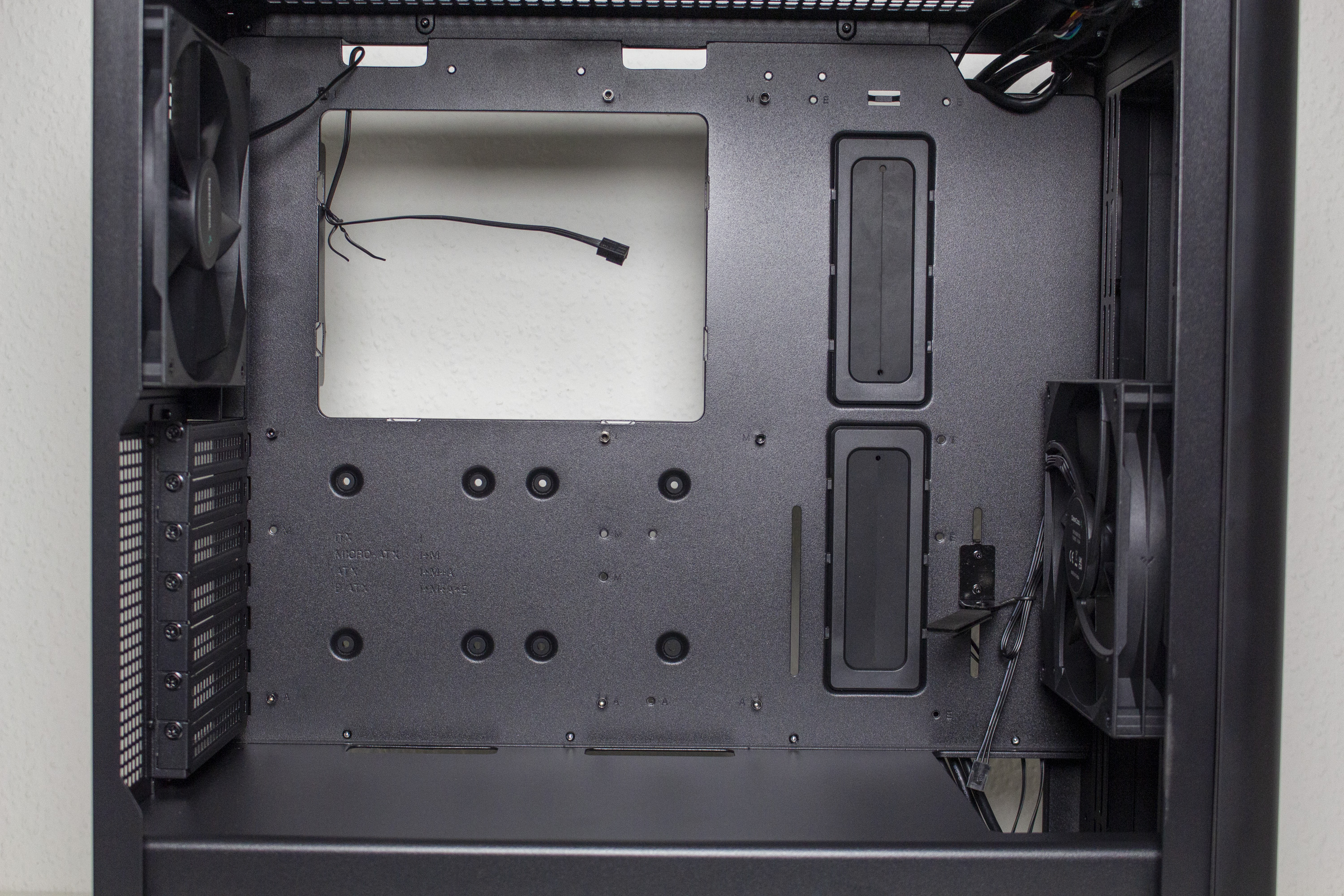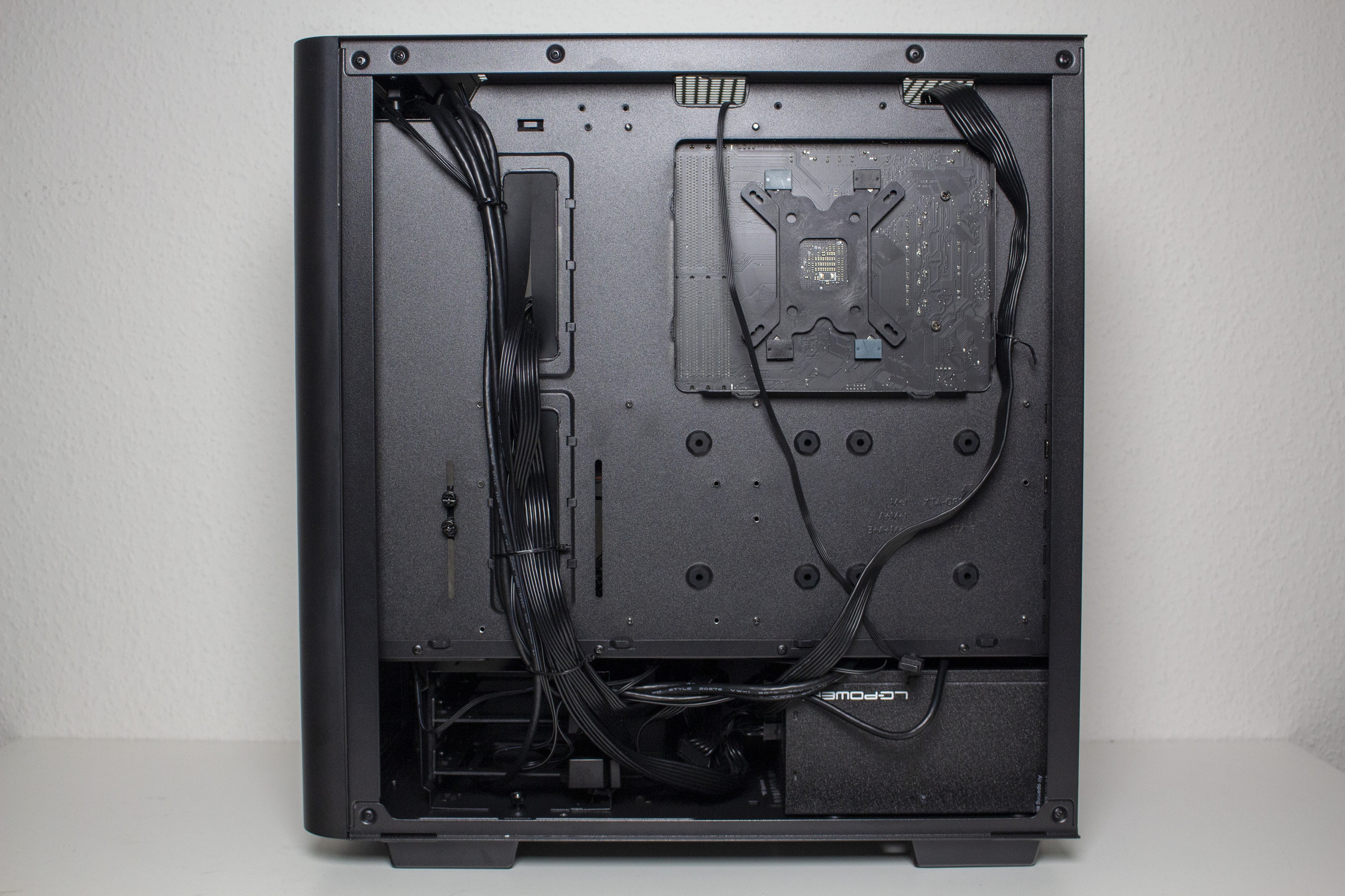 Ein durchdachtes Layout und die großzügigen Platzverhältnisse haben den Einbau aller Komponenten sehr einfach gemacht und alles war schnell erledigt. Das plane Mainboard-Tray erlaubt besonders breite Hauptplatinen und verfügt über gut positionierte Kabelmanagement-Öffnungen, die teilweise sogar gummiert wurden. Zusammen mit dem sehr guten Raumangebot auf der Rückseite des Mainboard-Trays kann ein sehr ordentliches System geschaffen werden.
