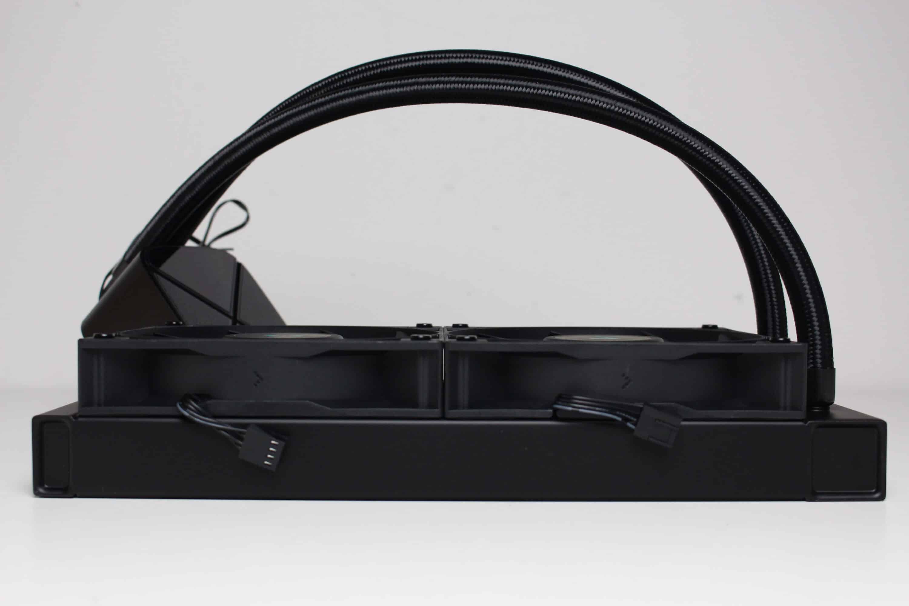 Die nicht regulierbare Pumpengeschwindigkeit hat aber leider negative Einflüsse auf die Lautstärke. Bei 3100 Umdrehungen pro Minute ist ein klares, hochfrequentes Summen der Pumpe zu hören, welches auf Dauer durchaus störend sein kann. Bei den Lüftern ist es wie immer Einstellungssache. Mit einer Minimaldrehzahl von 530 Umdrehungen pro Minute sind die Lüfter nicht wirklich wahrnehmbar und die Maximaldrehzahl von 2230 Umdrehungen sollte man nur in Extremsituationen oder gar nicht einstellen. Hier gilt es also im BIOS die richtige Lüfterkurve zu finden. Der breite Drehzahlbereich macht es zumindest möglich.