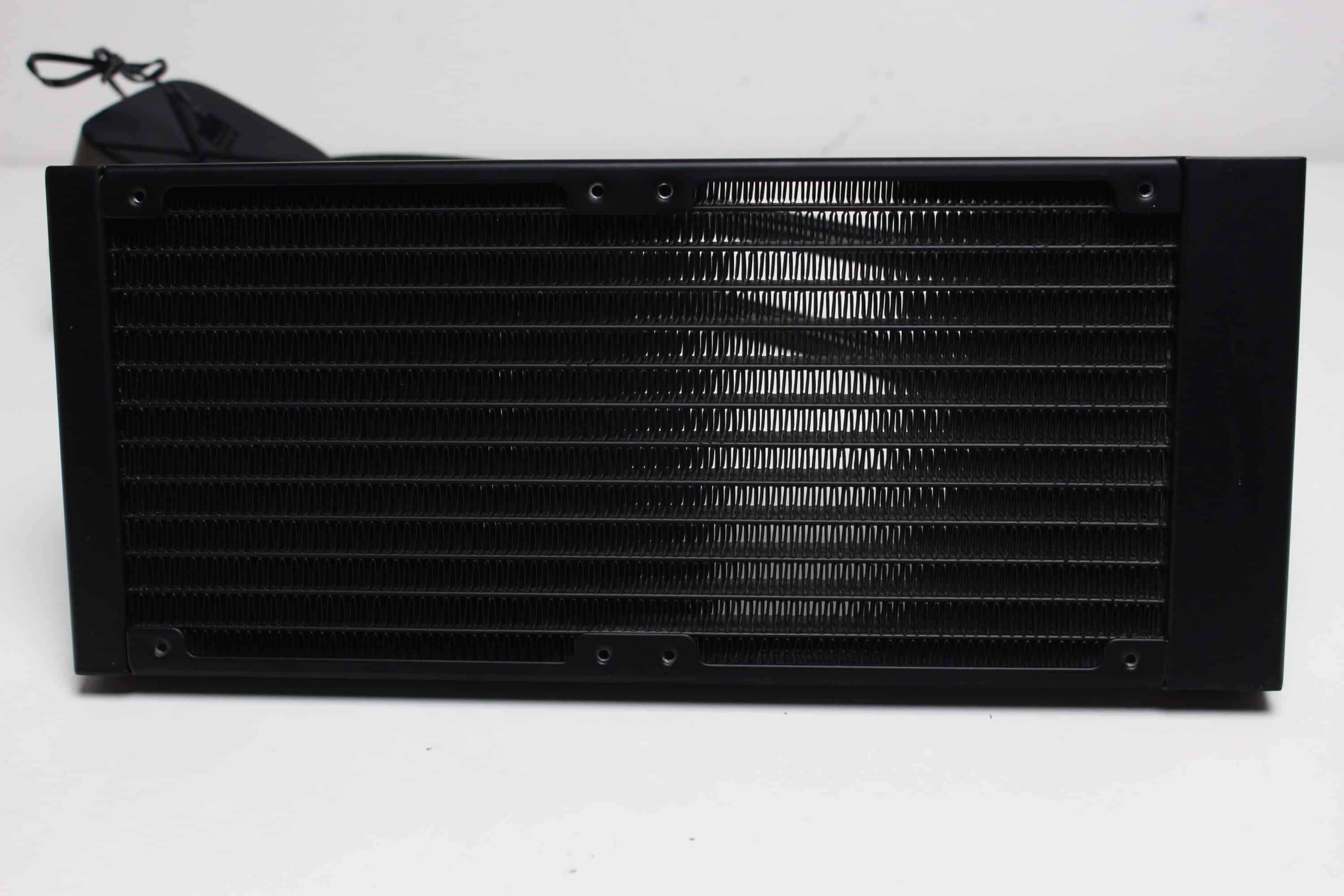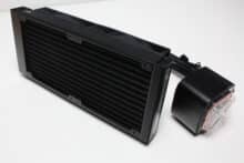 Bereits der Zusatz „Zero Dark“ im Produktnamen lässt darauf schließen, dass es bei der LS520S optisch eher unspektakulär zugeht. Und das geht direkt beim Radiator los. Dieser besteht aus einem schwarz lackierten Aluminium, ist 27 Millimeter dick und verfügt weder über Schriftzüge noch über andere farbige Akzente oder eine Beleuchtung. Am hinteren Ende erkennen wir zudem noch ein Ventil, welches dem Druckausgleich dienen und somit die Lebensdauer der Kompaktwasserkühlung verlängern soll.