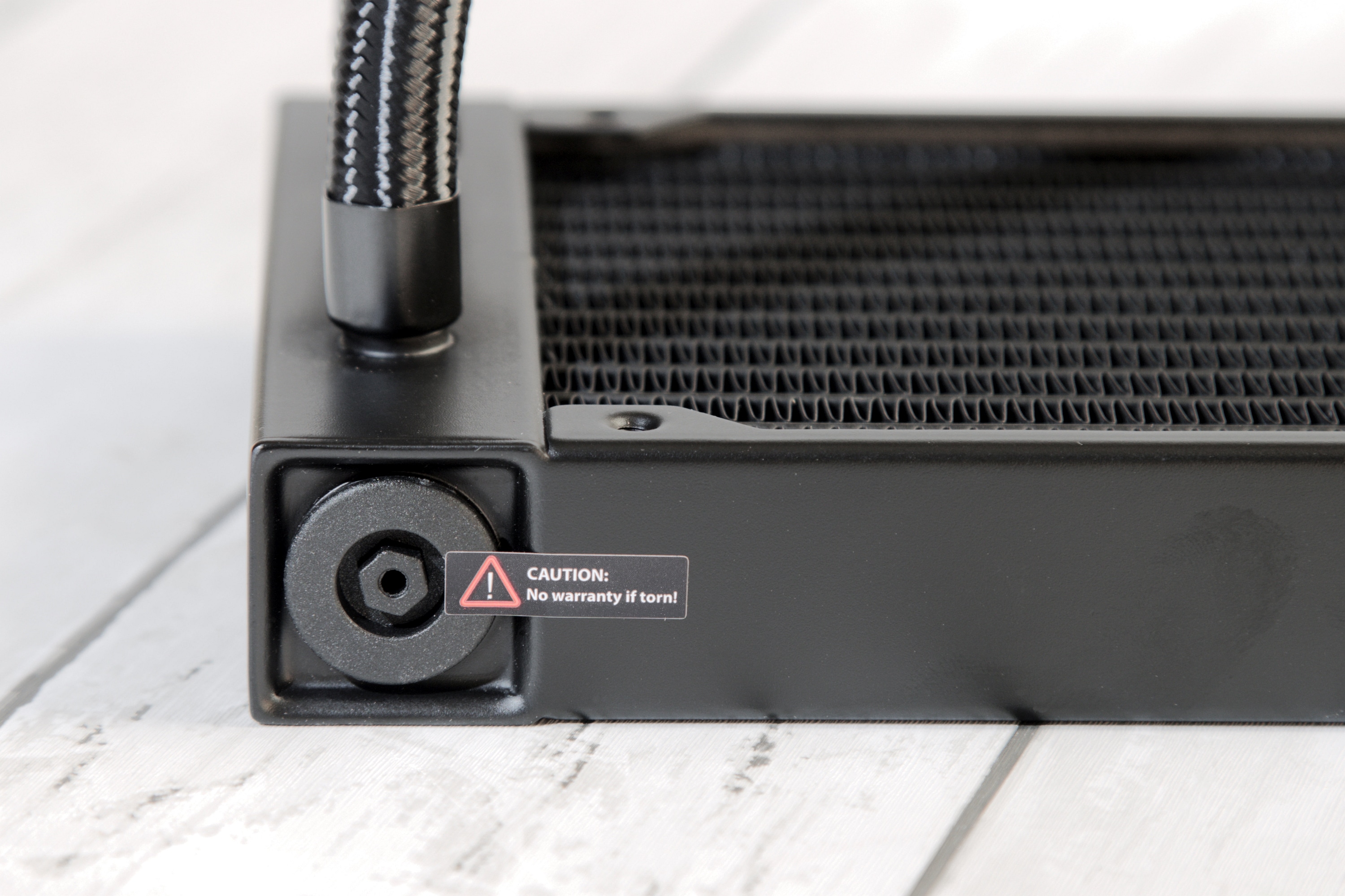Der Radiator wirkt zunächst unauffällig und so wie andere Radiatoren eben auch aussehen, doch an einer Seite fällt etwas auf, das man bei anderen Herstellern bisher nicht wirklich entdeckt: eine Art Druckausgleichsmechanismus. DeepCool nennt das „Anti-Leak Tech“. Letztendlich ist das eine Art Gummischlauch, der zusammengedrückt wird, wenn sich der Druck im Inneren der AIO-Wasserkühlung erhöht – was üblich ist, wenn die Temperatur steigt. Damit soll verhindert werden, dass ein Überdruck entsteht, durch den sich die Flüssigkeit herausdrücken könnte. Ich muss zugeben, dass mir persönlich ein solcher Fall noch nicht über den Weg gelaufen ist, aber es ist dennoch eine zusätzliche Sicherheitsvorkehrung, die man gerne mitnimmt, schließlich wären freie Flüssigkeiten im PC wirklich nicht wünschenswert.