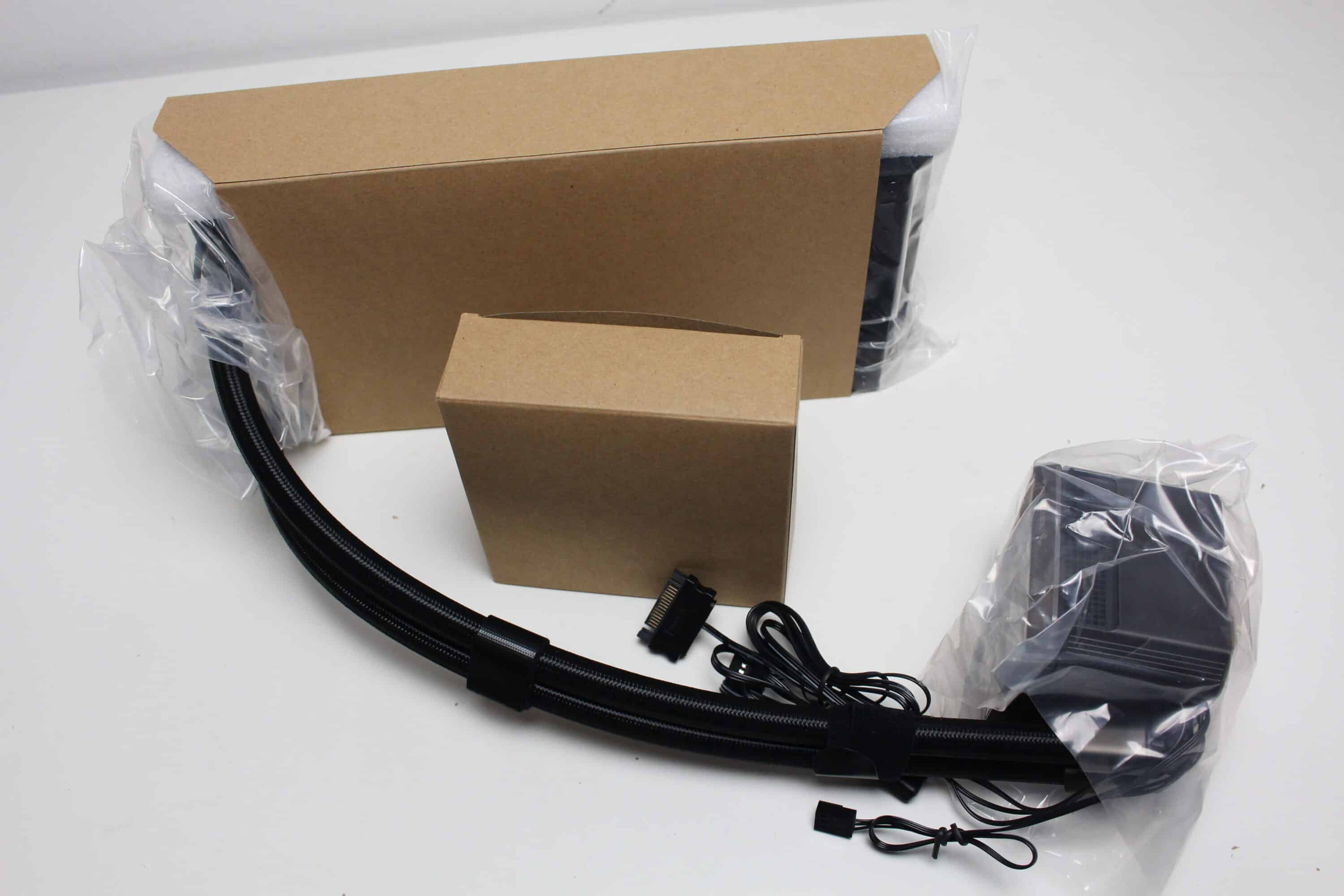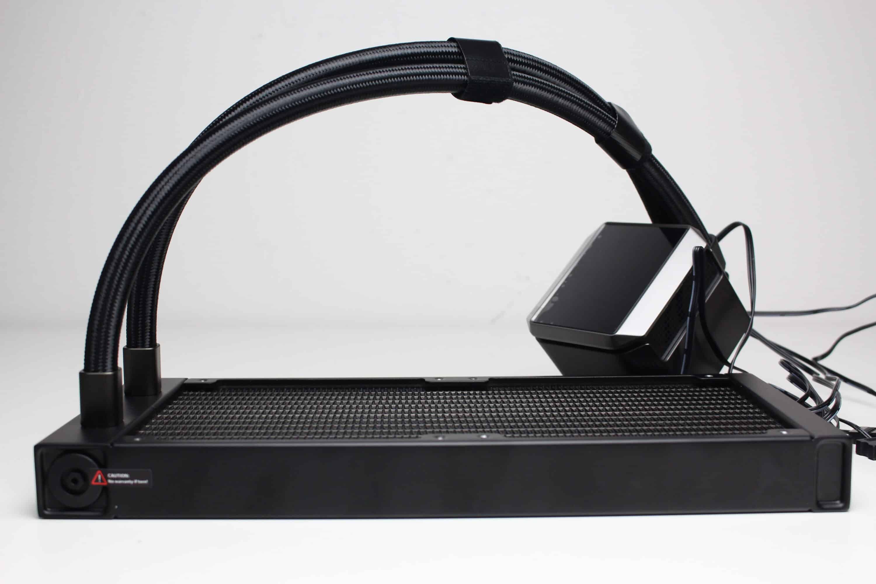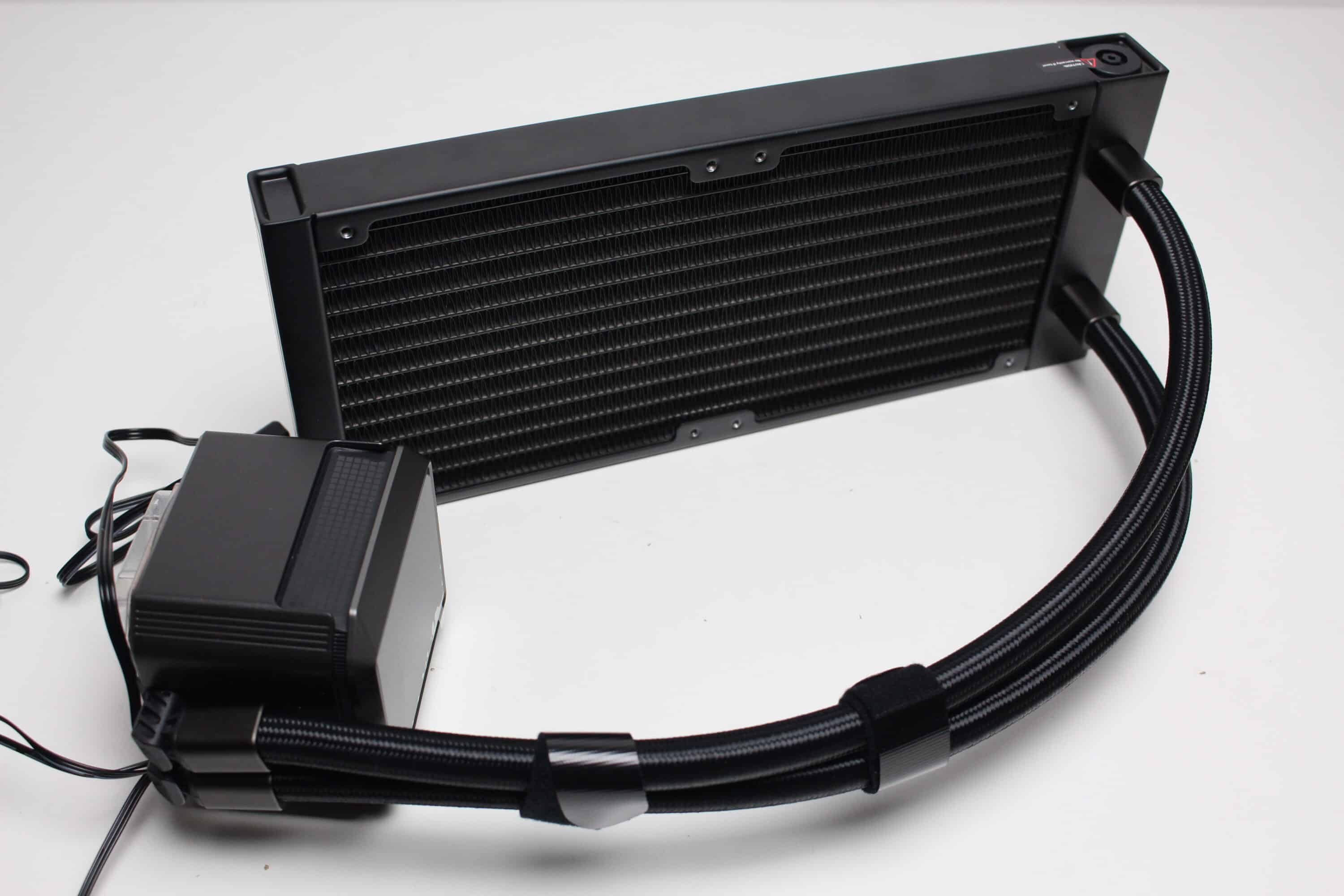 Die Wasserleitungen verfügen über schwarze, textilummantelte Schläuche, die mit jeweils 410 Millimeter durchschnittlich lang sind. In Verbindung mit den drehbaren Gelenken am Pumpenblock sollte dadurch eine flexible Positionierung im Gehäuse möglich sein. Da sowohl am Radiator als auch an den drehbaren Gelenken des Pumpenblocks die Schläuche durch Stahlmuffen festgepresst wurden, ist diese Kompaktwasserkühlung nicht erweiter- oder auffüllbar.