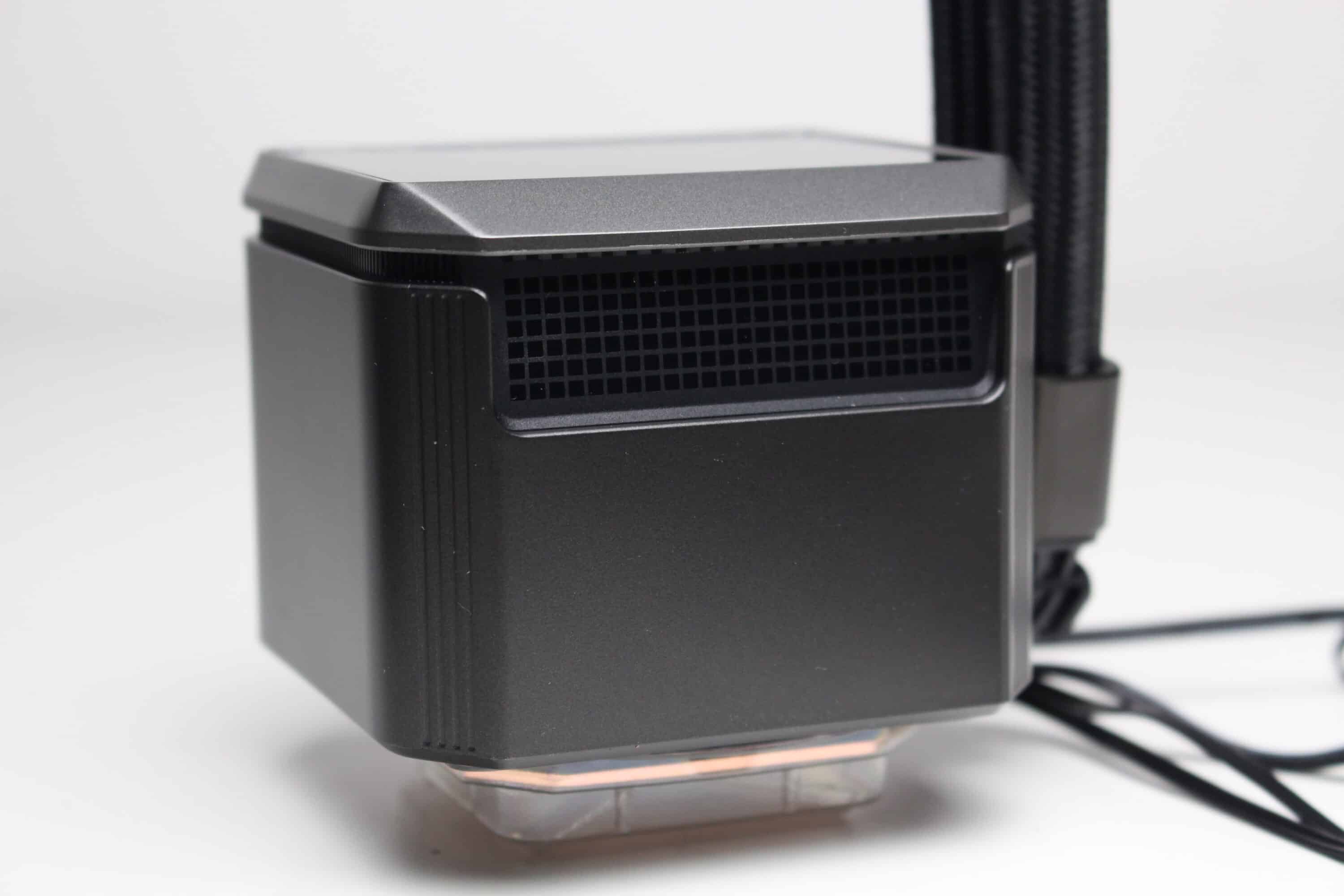 Optisch gibt es zwischen dem Radiator der DeepCool LS520S Zero Dark und dem Radiator des Mystique 240 keinen Unterschied. Auch der Radiator der Mystique 240 besteht aus einem schwarz lackierten Aluminium, ist 27 Millimeter dick und verfügt weder über Schriftzüge noch über andere farbige Akzente oder eine Beleuchtung. Am hinteren Ende erkennen wir zudem noch ein Ventil, welches dem Druckausgleich dienen und somit die Lebensdauer der Kompaktwasserkühlung verlängern soll.