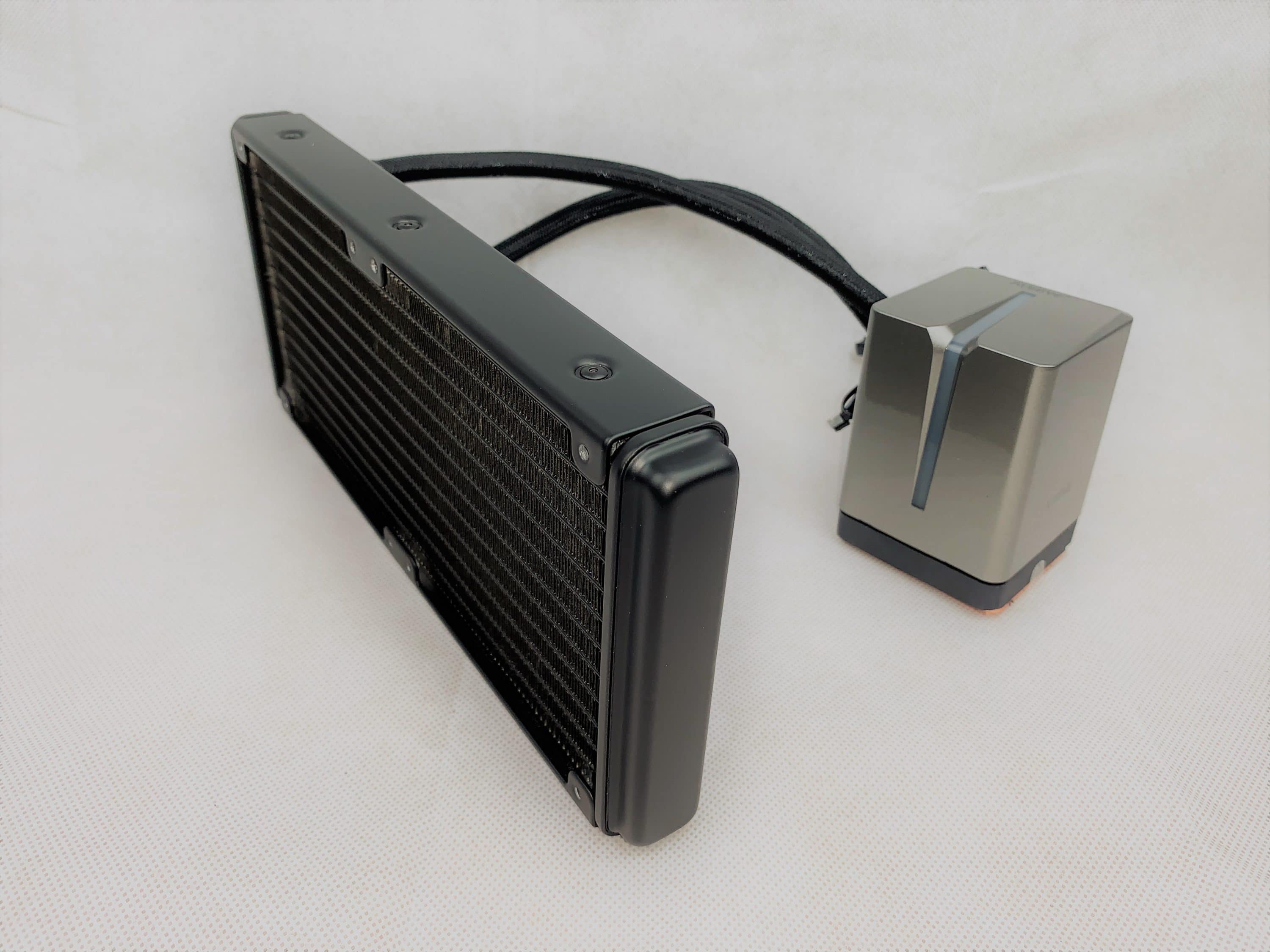 Alseye bietet mit dem Xtreme X240 eine AiO, die vor allem eins ist: extrem bunt und personalisierbar. Die umfangreich vorhandene LED-Beleuchtung ist umfassend konfigurierbar. Die im Zubehör befindliche Fernbedienung und der Controller ermöglichen die Steuerung von bis zu zehn 5-Pin-LED-Lüfter/Strips. Davon abgesehen ist die Verarbeitung gut und die Montage auch für Einsteiger durchführbar.
