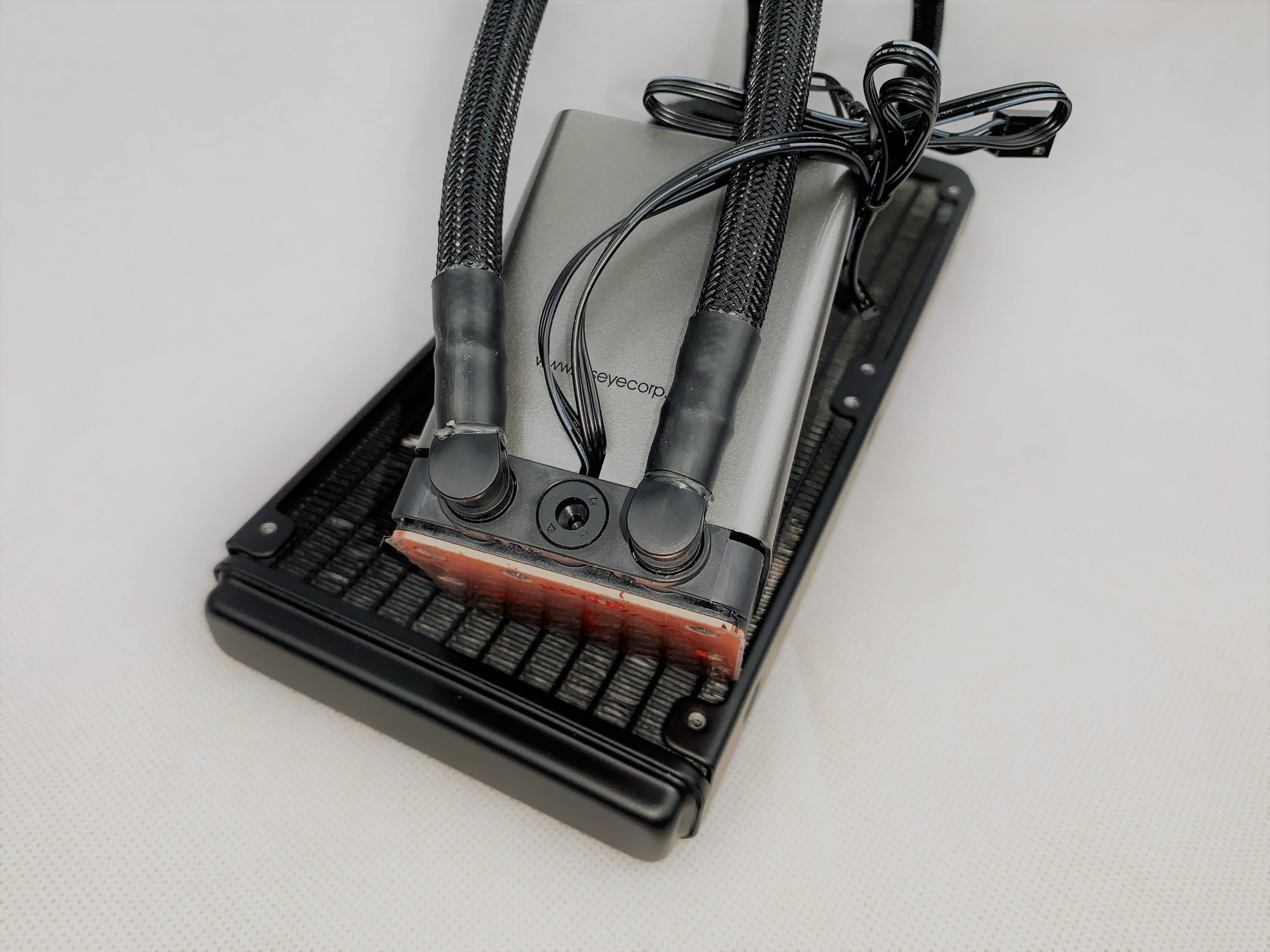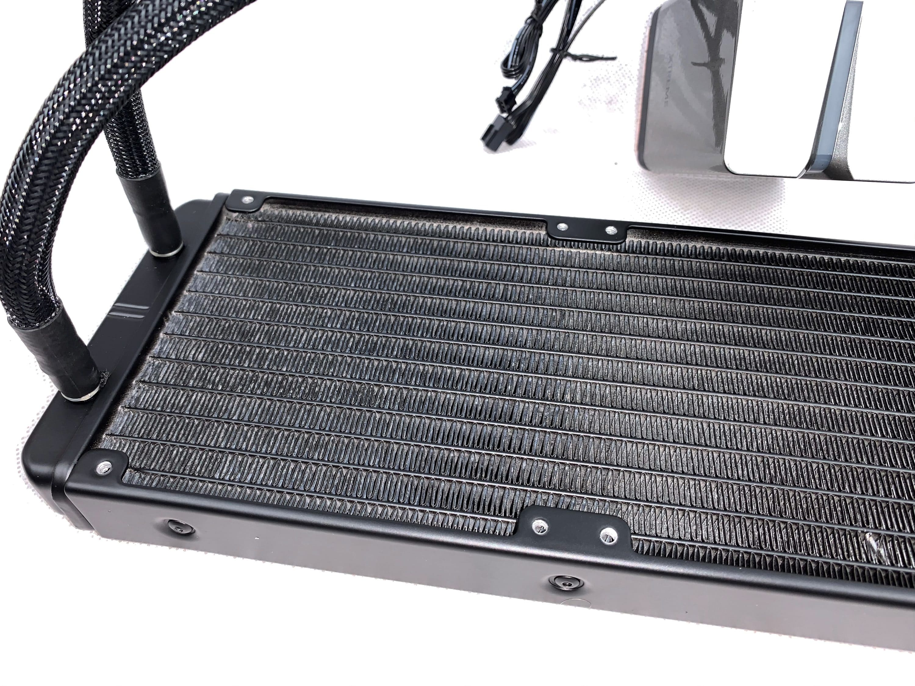 Die Verarbeitung des Xtreme X240 ist recht gut. Am Radiator konnten keine nennenswert verbogene Lamellen entdeckt werden. Das Pumpengehäuse ist aufgrund des verwendeten Plastik nicht sonderlich solide, aber die Befestigungen der Schläuchen ist einwandfrei. Letztere sind auch ausreichend flexibel.