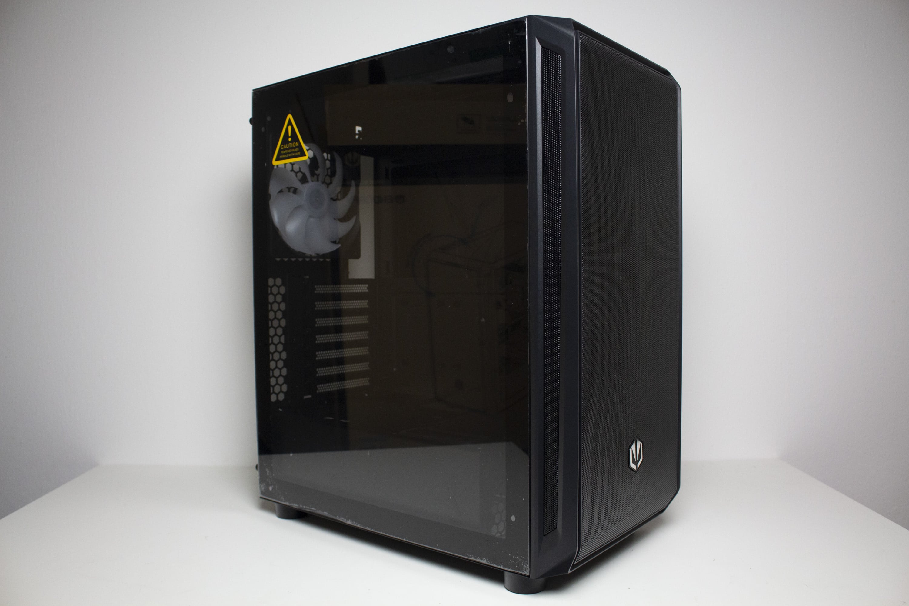 Betrachtet man die äußere sowie innere Verarbeitung des ENDORFY Arx 500, dann gibt es grundsätzlich nichts zu meckern. Die Qualität der Materialien sowie dessen Lackierung wirken solide und scharfe Ecken und Kanten sucht man vergebens. Auch der Großteil der eingesetzten Materialien wirkt stabil und entspricht der Preisklasse. Etwas stabiler hätten jedoch der Kunststoffrahmen des Frontpanels und das rechte Seitenteil sein können. Insgesamt ist die Verarbeitung also in Ordnung, aber nicht herausragend. Löblich sind hingegen die Implementierung vieler werkzeugloser Montagetechniken sowie die Funktion und Haptik der modularen Gehäuseelemente wie Deckel oder Front. In diesem Zusammenhang lässt sich auch noch erwähnen, dass die Seitenteile ohne Probleme am Korpus befestigt werden können.