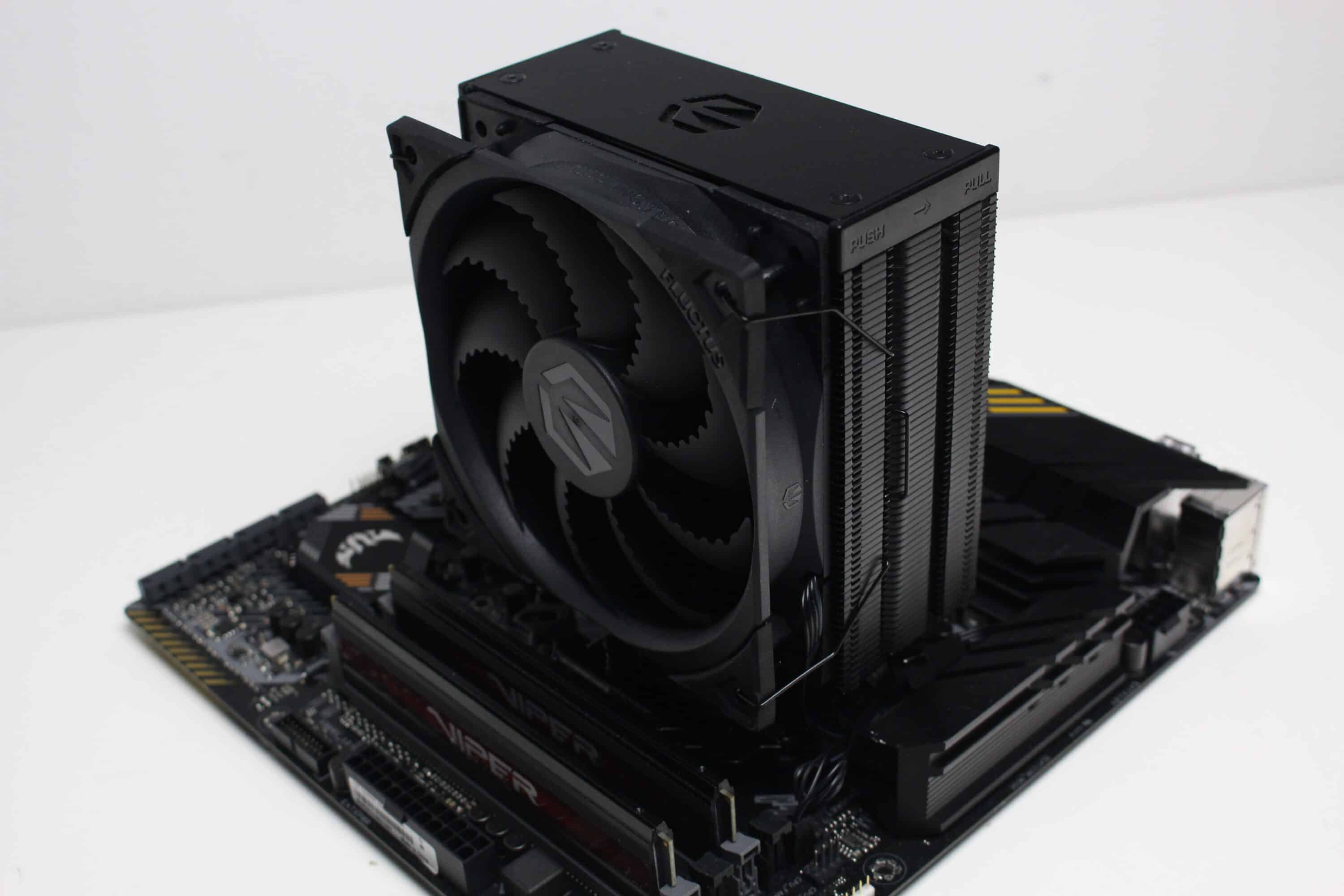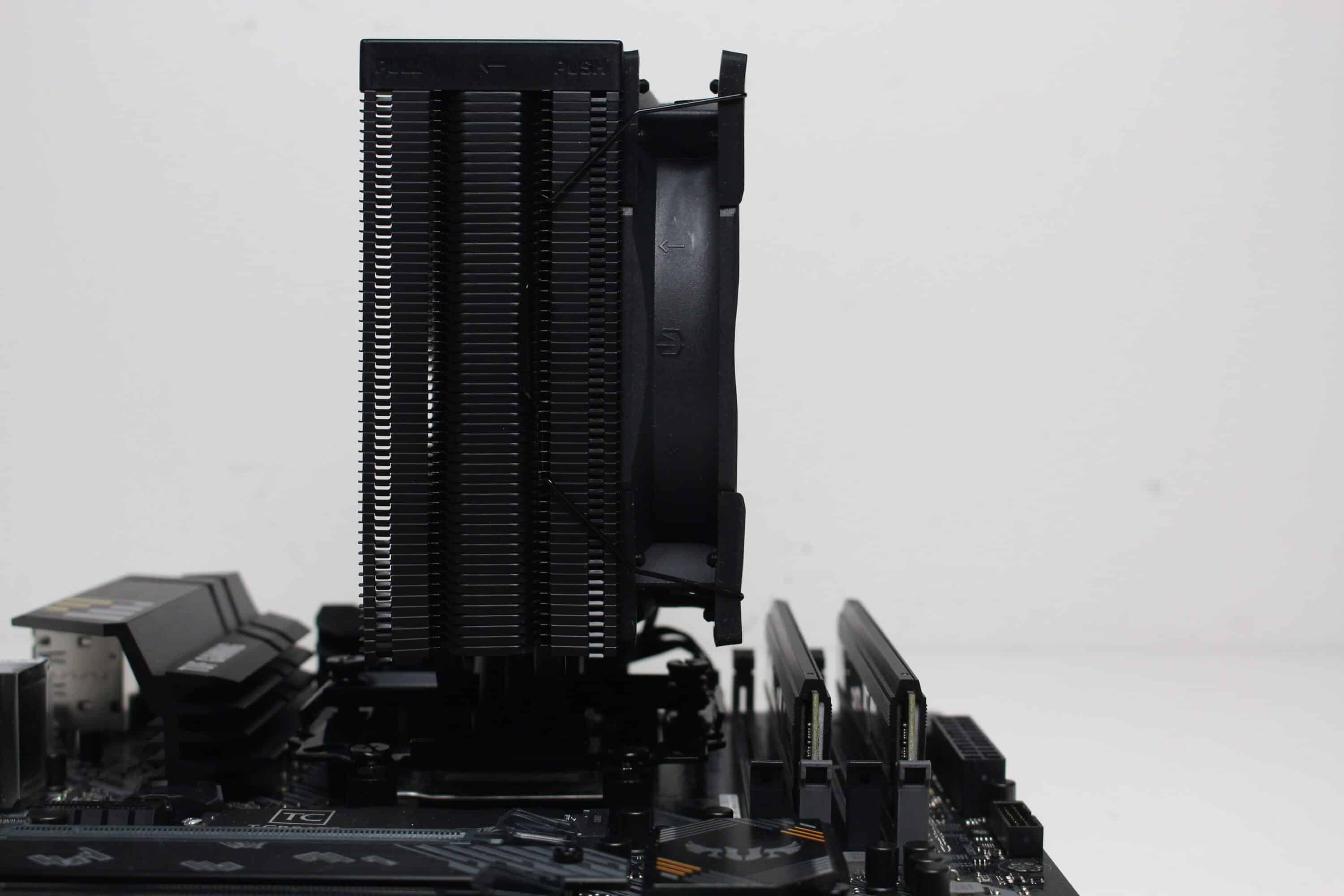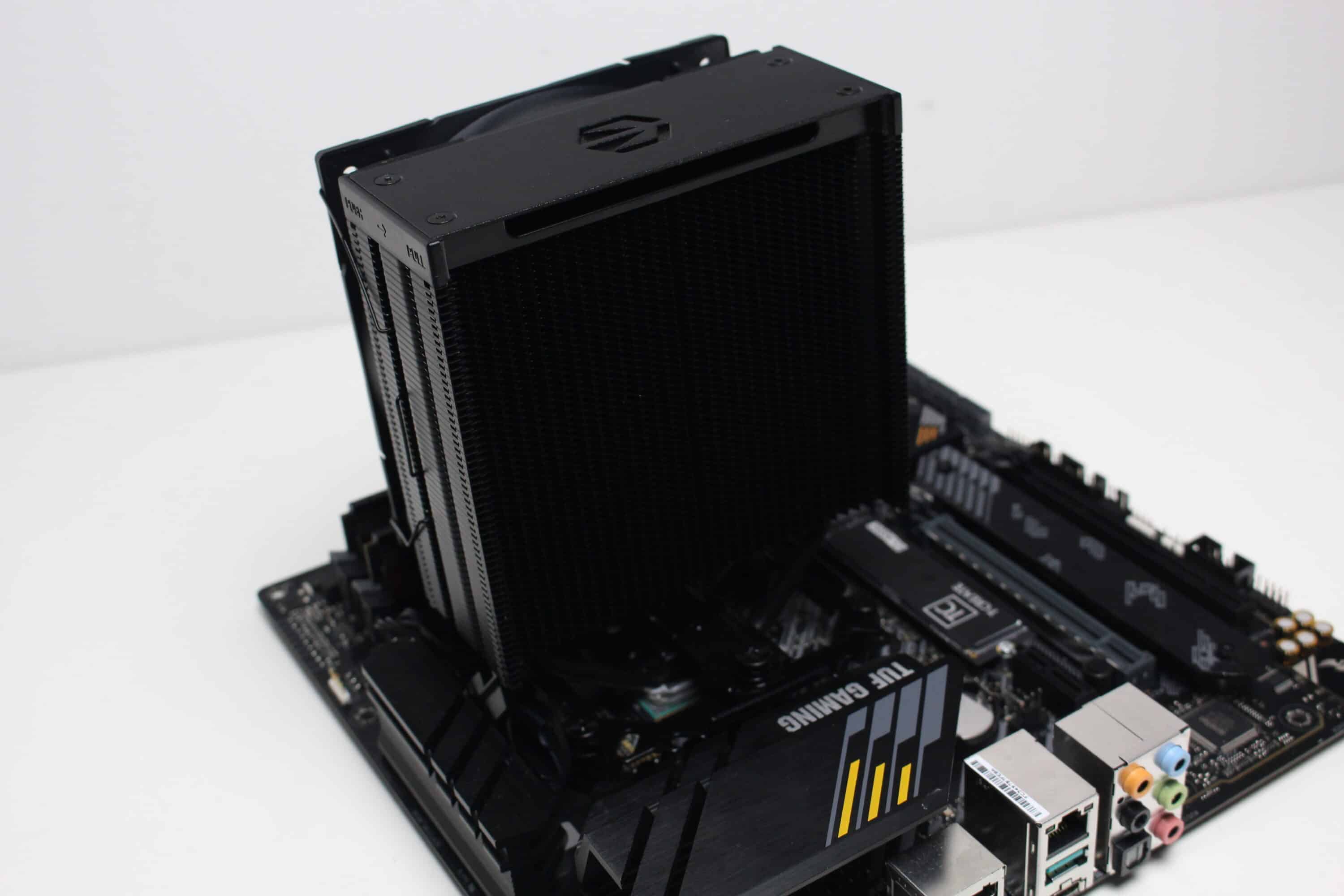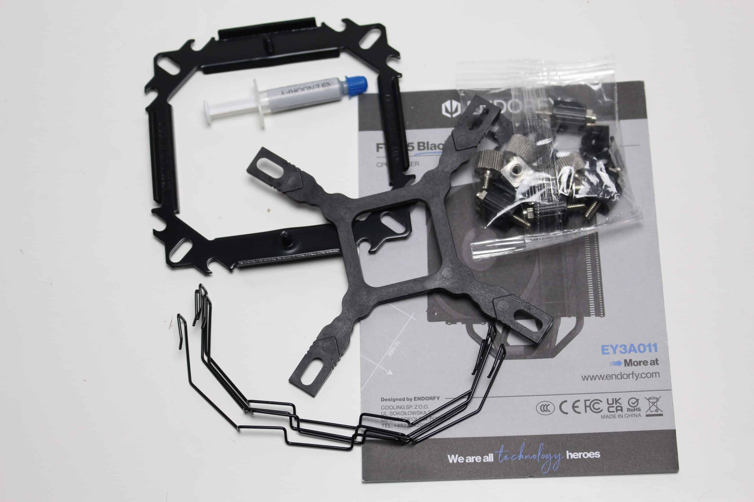 Bereits beim Fera 5 hat das Montagesystem gut funktioniert. Deshalb dachte sich ENDORFY sicherlich „never change a running system“ und hat lediglich die Farbgebung des Halterahmens geändert. Passend zum Produktnamen ist dieser nämlich ebenfalls schwarz eloxiert worden. Das Montagesystem ist durchdacht gestaltet und ermöglicht eine frustfreie Montage des CPU-Kühlers. Die Anleitung ist kompakt aber eindeutig aufgebaut. Der Fera 5 Black ist so gestaltet, das selbst mit den zwei Lüftern keine Probleme mit VRM-Kühlern oder hohen RAM-Heatspreadern entstehen sollten.