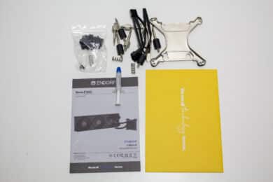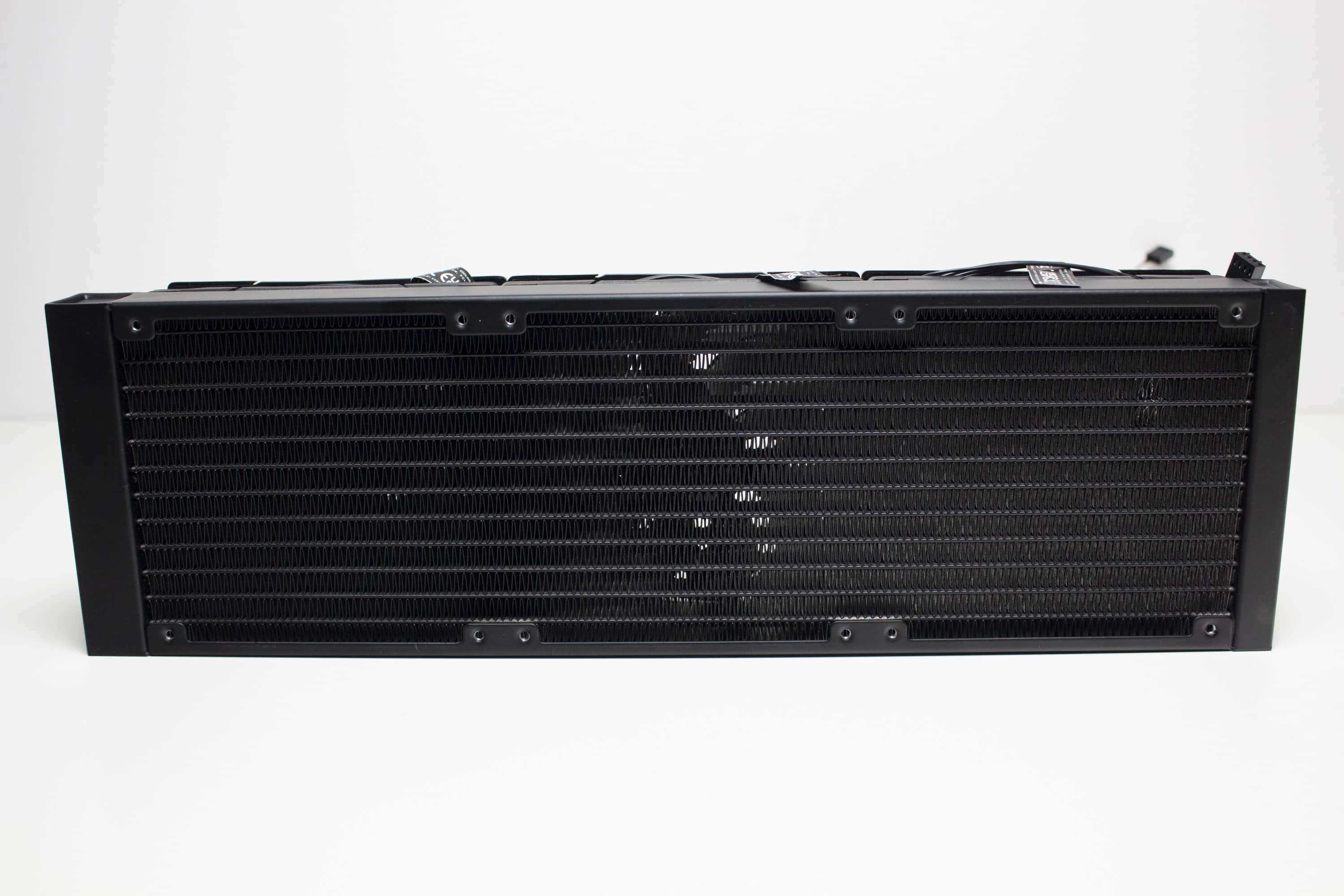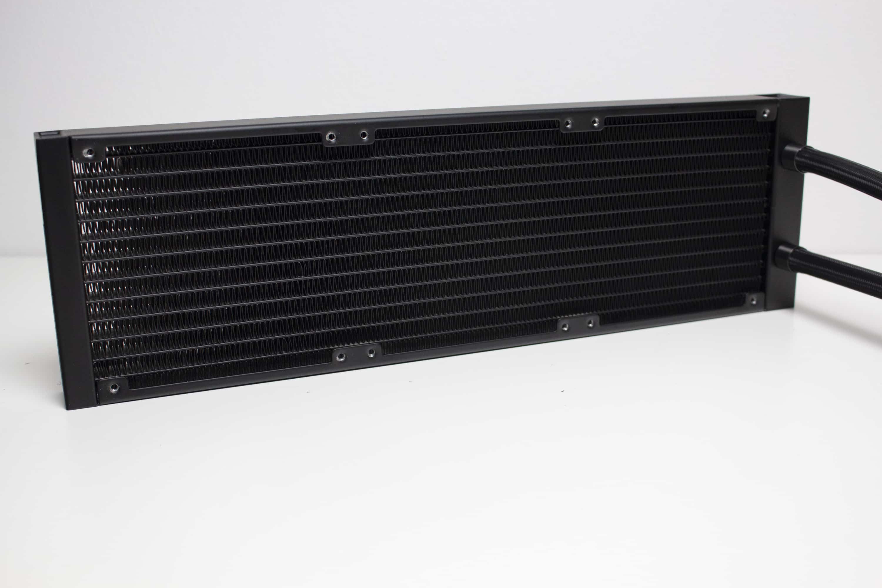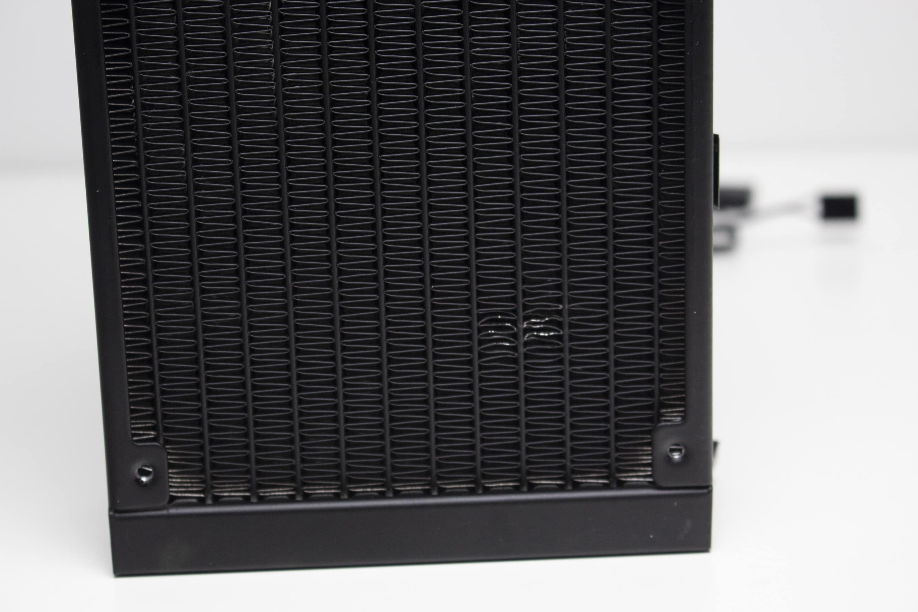 ENDORFY belässt es bei der Navis F360 bei einem schlichten Design . So sind Radiator, Schläuche und der Pumpenblock schwarz und optisch sehr unauffällig. Auf sämtliche RGB-Effekte oder digitale Displays wurde verzichtet. Der aus Aluminium gefertigte Radiator ist 28 Millimeter dick und liegt damit etwas über dem Durchschnitt vieler handelsüblicher Kompaktwasserkühlungen. Leider hatte unser Testmuster leichte Beschädigungen der Aluminiumlamellen. Diese sollten jedoch keinen Effekt auf die Kühlleistung haben. Ab Werk sind die Lüfter bereits am Radiator befestigt und wurden sauber vorverkabelt.