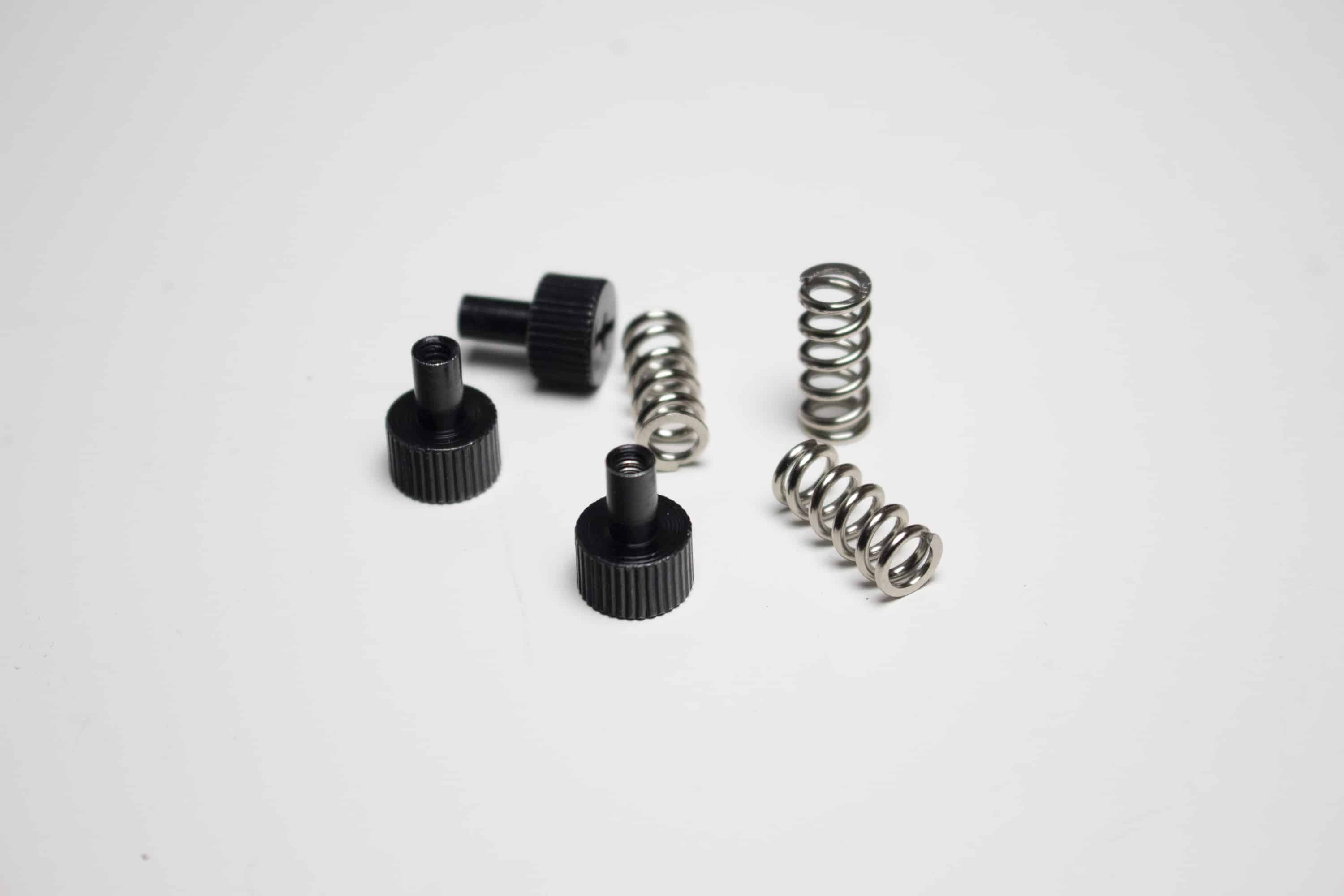 Bei einem AMD-Sockel müssen auf der Vorderseite des Mainboards lediglich die vorderen Montagebügel des Retentionmoduls entfernt werden. Die eigentliche Backplate verbleibt hinter dem Mainboard und wird auf der Vorderseite anschließend mit vier langen Abstandshaltern ausgestattet. Nachdem eine entsprechende Menge Wärmeleitpaste aufgetragen und die Schutzfolie abgezogen wurde, kann der CPU-Block auf die Stand-Offs gesetzt werden. Die anschließende Arretierung erfolgt über vier schwarze Rändelschrauben bzw. vier silberne Federn zur Regulierung des Anpressdrucks.