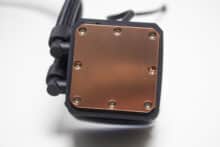 Die im Block eingebaute Pumpe mit Keramik-Lager dreht mit maximal 3200 Umdrehungen pro Minute und wird über einen 3-Pin-Stecker mit dem Mainboard verbunden. Eine Übertragung der Wärme vom Heatspreader der CPU an den Pumpenblock erfolgt über eine große Kupferplatte.