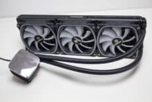 In Bezug auf die erbrachte Kühlleistung weiß die Enermax AQUAFUSION ADV 360 zu überzeugen und kann mit 360-mm-Varianten anderer Hersteller problemlos mithalten. Die Pumpe gibt bei voller Drehzahl ein leichtes Summen von sich, welches jedoch leicht von den Lüftern übertönt wird, wenn diese auf Maximalgeschwindigkeit laufen. Sollte die AQUAFUSION ADV in einem Silent-System zum Einsatz kommen, empfehlen wir sowohl Pumpe als auch Lüfter zu drosseln. Da zumindest bei unserer CPU bei reduzierten Geschwindigkeiten nur drei Grad höhere Temperaturen verzeichnet werden konnten, sollte eine Drosselung grundsätzlich kein Problem darstellen. Es gibt genug Spielraum bis zum Erreichen einer kritischen Temperatur. Die Mindestdrehzahl der Lüfter lag bei unserem Exemplar bei 650, die der Pumpe bei 1600 Umdrehungen pro Minute.