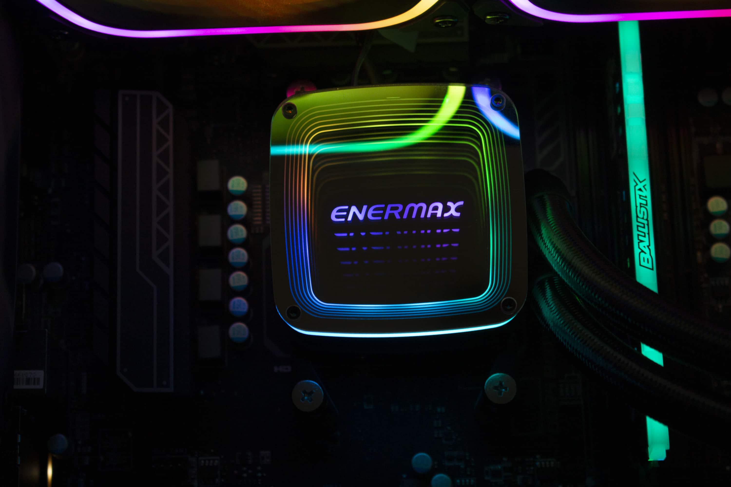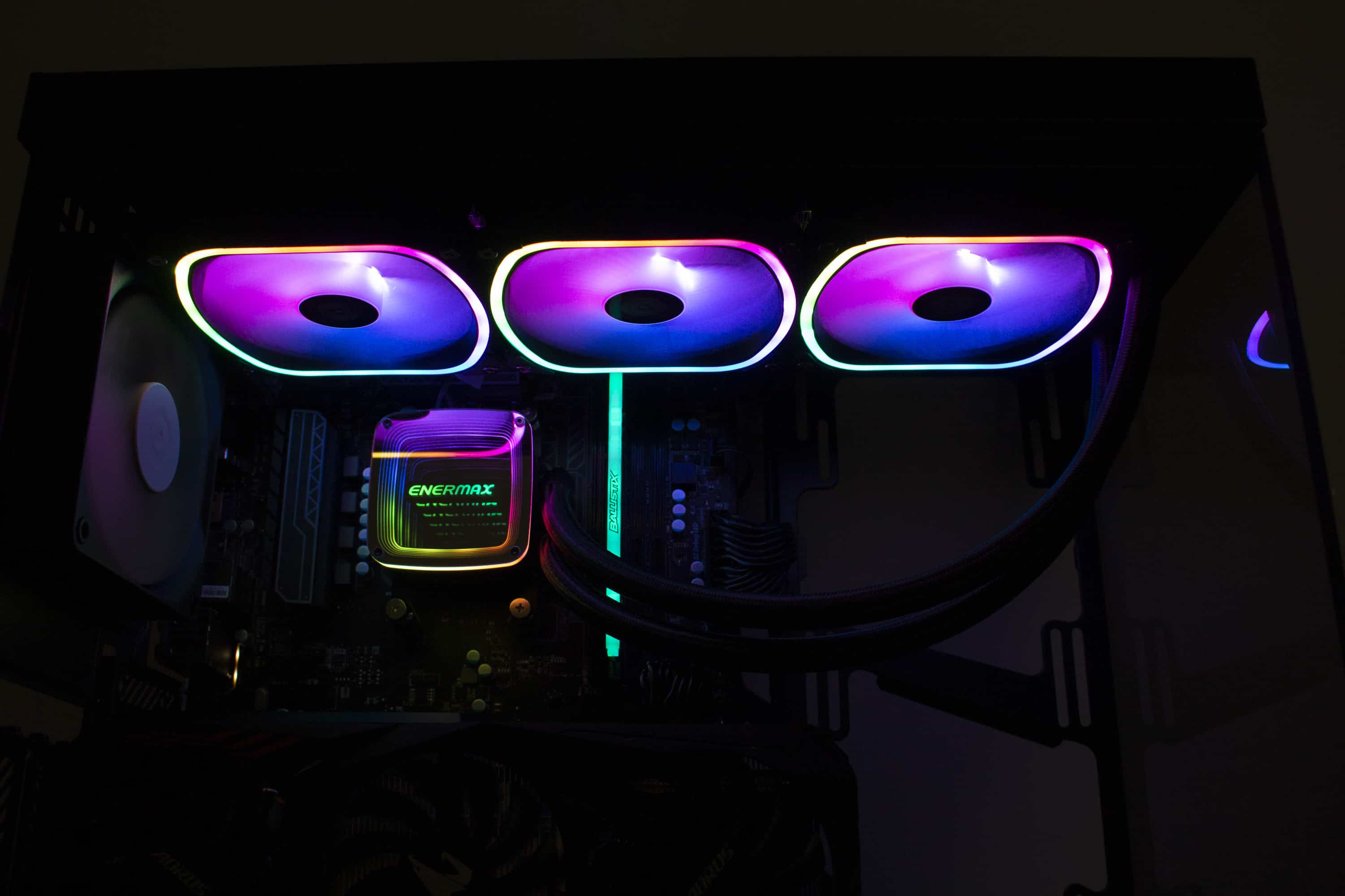 Die Enermax AQUAFUSION ADV 360 bietet ein gutes Gesamtpaket aus u00fcberzeugender Ku00fchlleistung sowie Montage und einer schicken Optik mit adressierbaren LEDs. Lu00fcfter und Pumpe sollten jedoch gedrosselt werden, wenn der Wunsch zu einer niedrigeren Lautstu00e4rke besteht.
