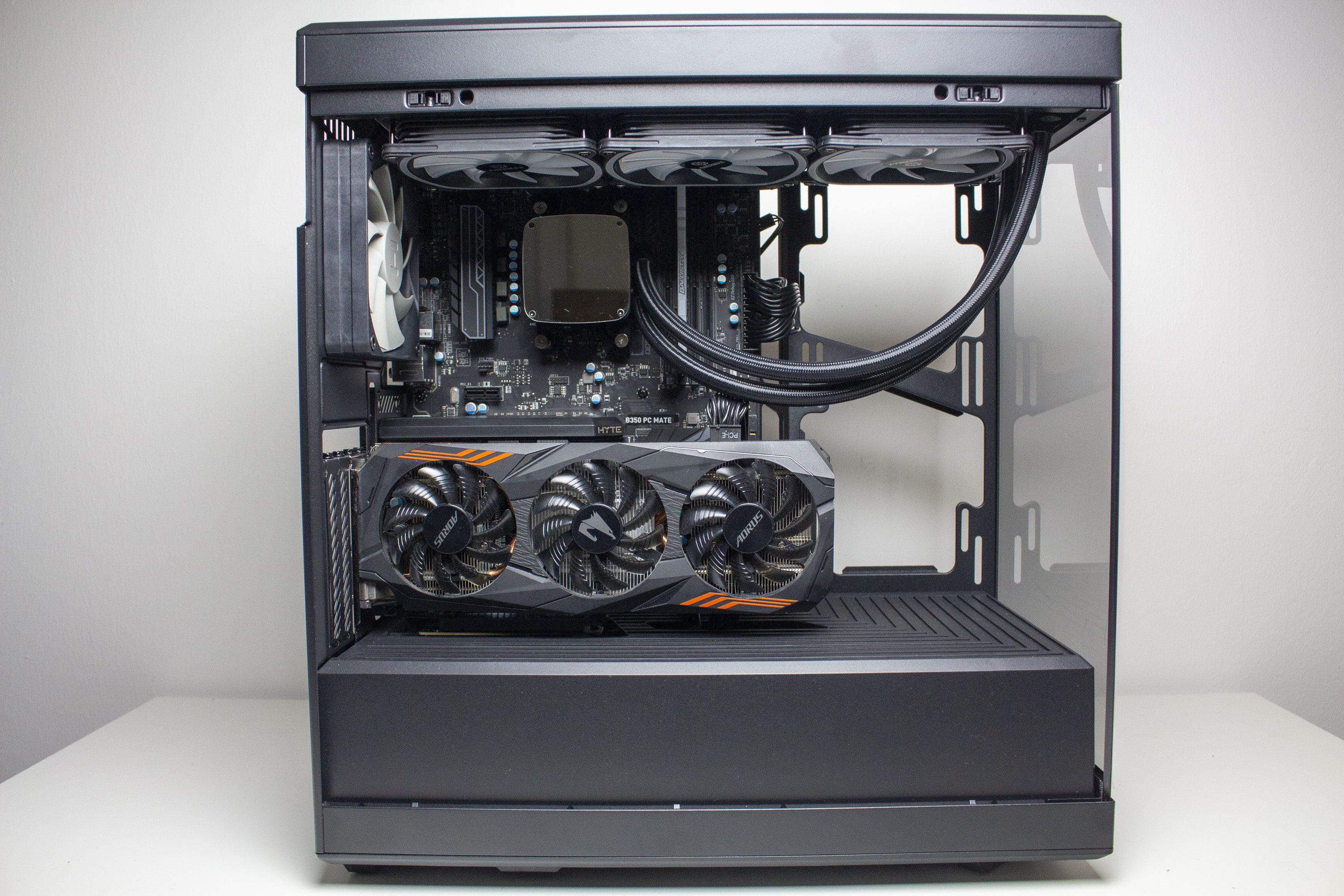 Für das Review kommt ein Testsystem auf einem Benchtable zum Einsatz. Dadurch können wir Faktoren wie einen Hitzestau im Gehäuse ausschließen. Zur Erläuterung der Montageschritte wurde jedoch ein Gehäuse (HYTE Y40) verwendet. Das Testsystem besteht aus den folgenden Komponenten.