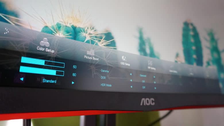 Das VA-Panel weist eine Helligkeit von 300 cd/m² auf und ist somit leider zu dunkel für echtes HDR, obwohl der Monitor vom Hersteller mit HDR-Ready angegeben wird. Der Kontrastwert beträgt 3.000:1 und der Blickwinkel 178 Grad. Dabei hat der Monitor einen Curved-Radius von 1500R, ist also etwas stärker gekrümmt als die meist üblichen 1800R. Das stört aber überhaupt nicht. Im Gegenteil, man hat noch mehr das Gefühl, in den wiedergegebenen Inhalt eintauchen zu können.