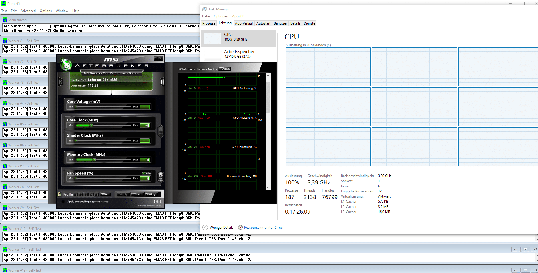 Wir testen das Kühlsystem einmal im automatischen Modus, und einmal im PWM-Modus mit maximaler Pumpen- bzw. Lüfterleistung. Somit ist sowohl der alltägliche Betrieb, als auch die maximale Leistung des Celsius S28+ abschätzbar. Wir betrachten anschließend die Temperatur im Idle, als auch unter Volllast mit Prime95. Die Raumtemperatur betrug bei jedem Test ca. 24° C.
