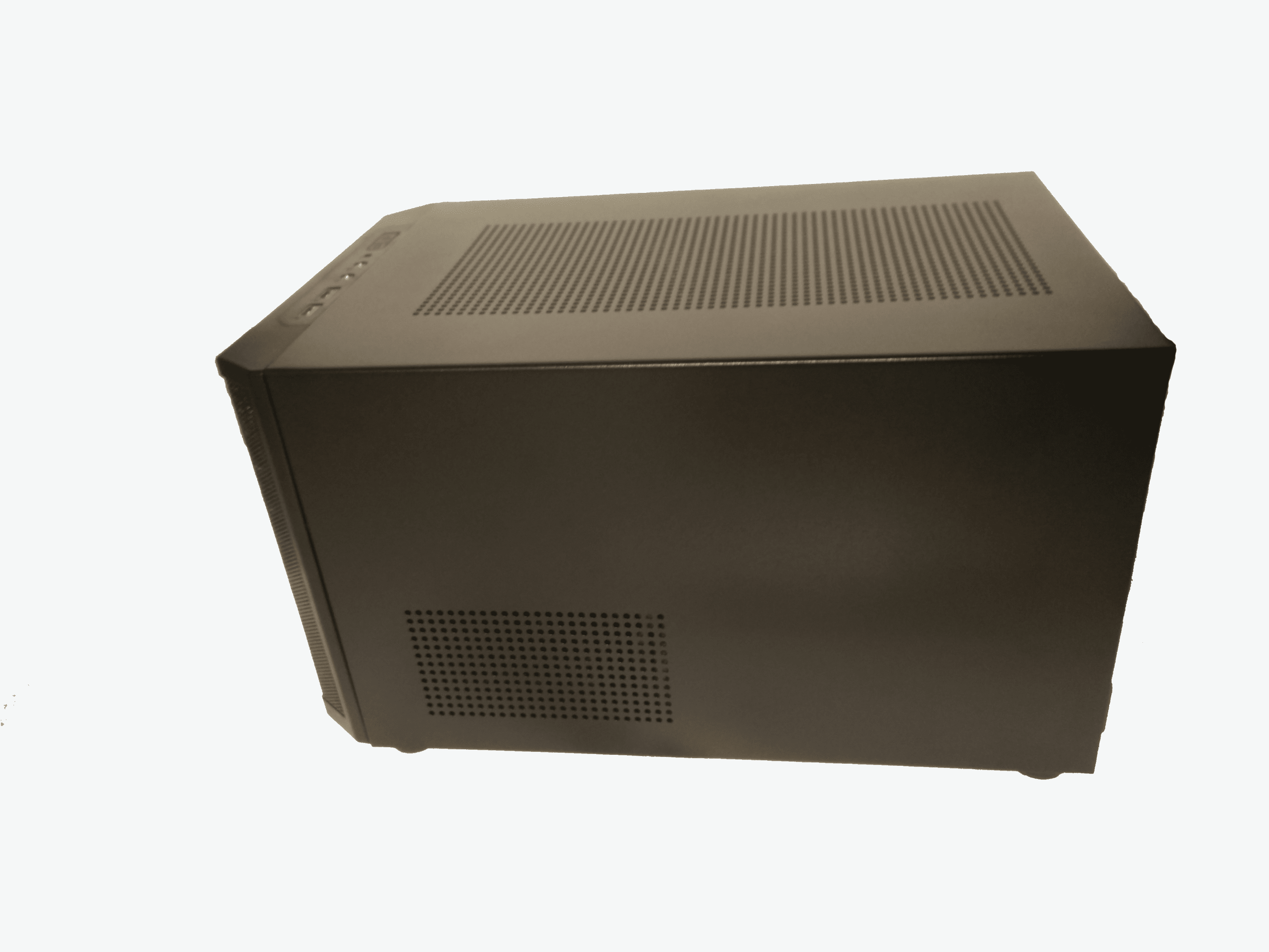 Mit Maßen von 250 x 203 x 367 mm bietet das Gehäuse im Innenraum Platz für stolze 19,5 Liter, was für ein Mini-ITX Gehäuse mehr als ordentlich ist. Trotz der geringen Größe ist das Core 500 auch ziemlich stabil. Das liegt nicht zuletzt daran, dass das Gehäuse nicht aus billigem Plastik, sondern aus Metall besteht. Dadurch könnt ihr auch ordentlich Gewicht an Hardware in das Gehäuse packen, ohne Angst zu haben, dass beim Transportieren der Boden schlapp macht.