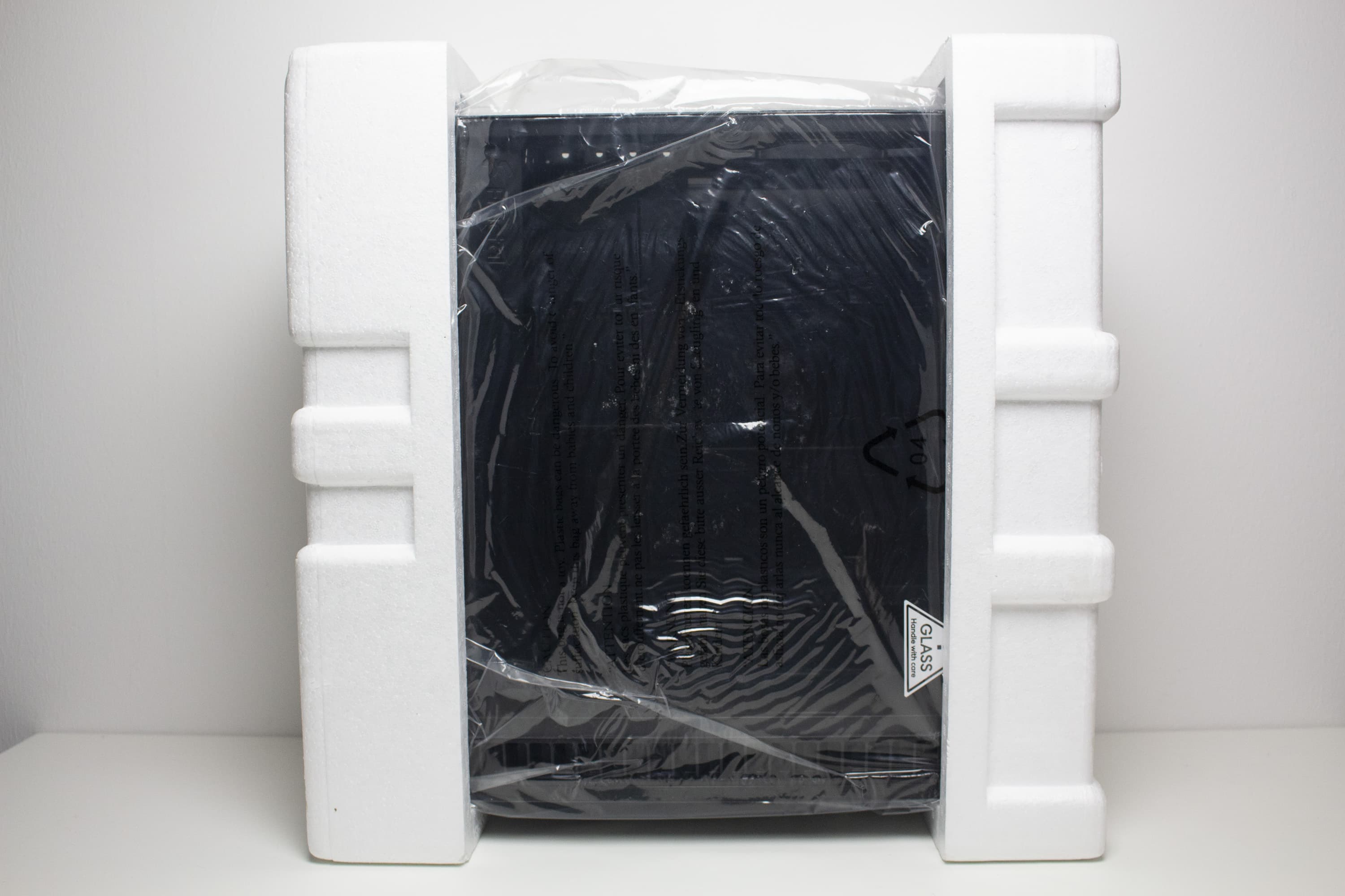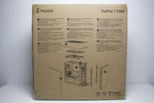 Fractal Design verpackt das Define 7 Mini in einem Karton aus einfacher, brauner Pappe. Zusätzlich wurden mit schwarzer Farbe technische Zeichnungen, elementare Features und alle technischen Daten auf die Außenhülle des Kartons gedruckt. Innerhalb der Verpackung verwendet der Hersteller zwei Blöcke aus herkömmlichen Styropor sowie eine Schutzfolie, um den Mini-Tower vor Beschädigungen durch den Transport zu schützen.