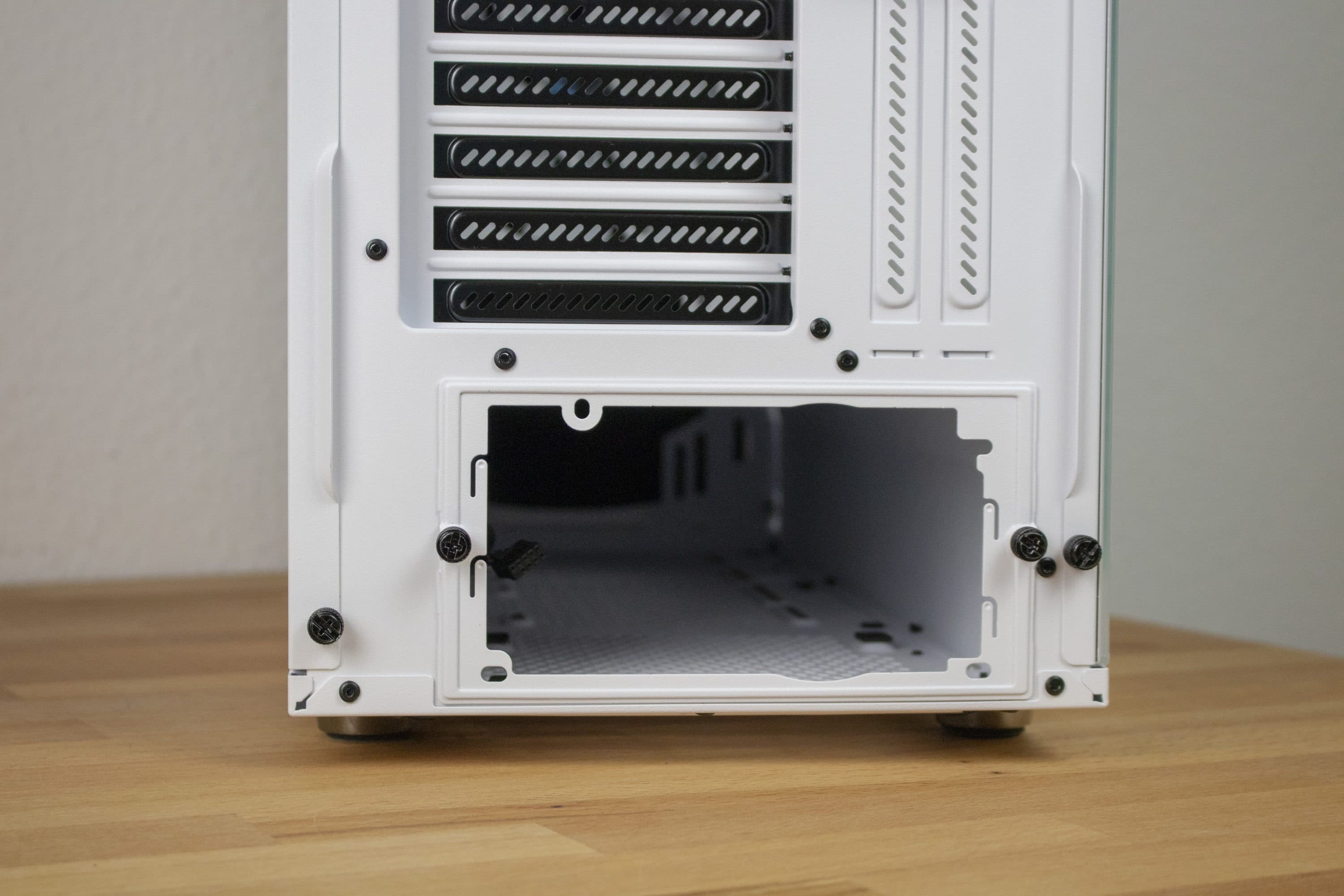 Wie bereits beim Vorgängermodell sorgt der laufwerkfreie Innenraum für ein großzügiges Platzangebot beim Montieren der Hardware. Wie im vorhergehenden Absatz gezeigt werden konnte, wurde der zur Verfügung stehende Raum sogar erweitert.