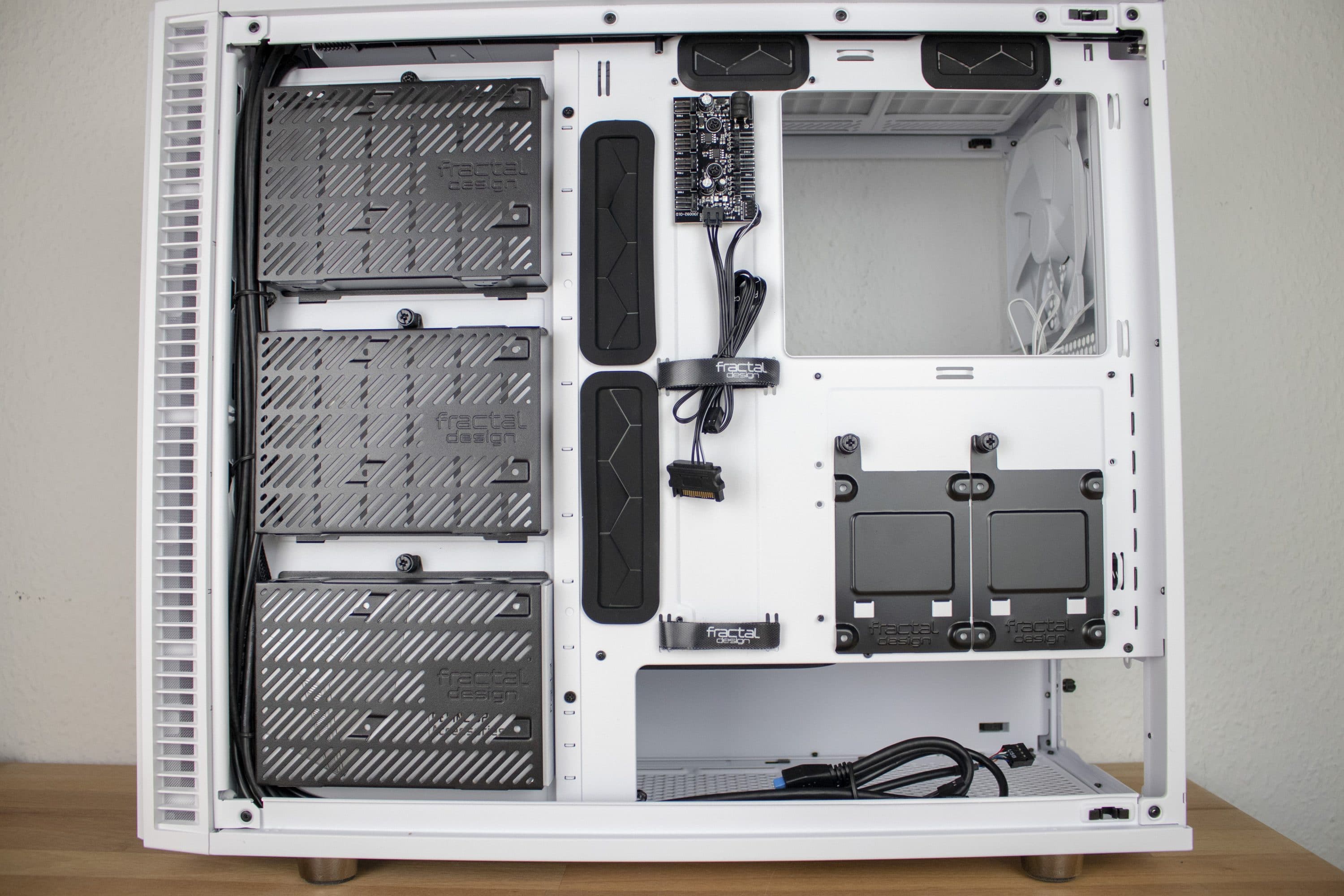 Insgesamt verrät bereits der erste Blick ins Innere des Gehäuses, dass das Konzept des Vorgängers konsequent weiterentwickelt wurde. Das Gehäuse wirkt schlicht und aufgeräumt. Bemängelt werden kann vor allem das Fehlen von RGB-Beleuchtung, die bei den meisten Konkurrenzprodukten dieser Preisklasse zum Standard zählt.