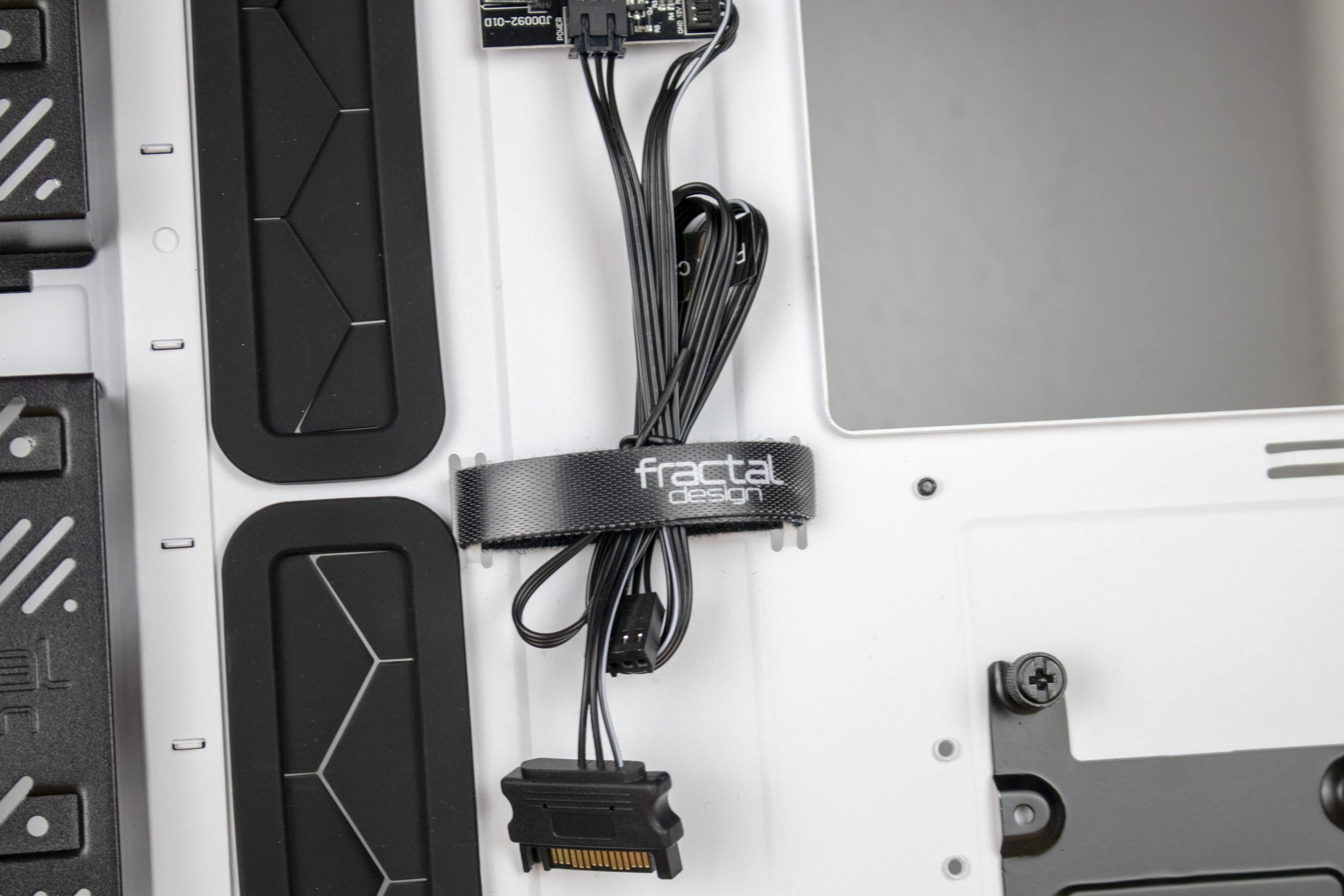 Weiterhin fällt uns das bereits erwähnte Kabelführungssystem, das teilweise mit Klettverschlüssen ausgestattet ist, sehr positiv auf. Es ermöglicht eine ideale Kabelverlegung im Gehäuse.