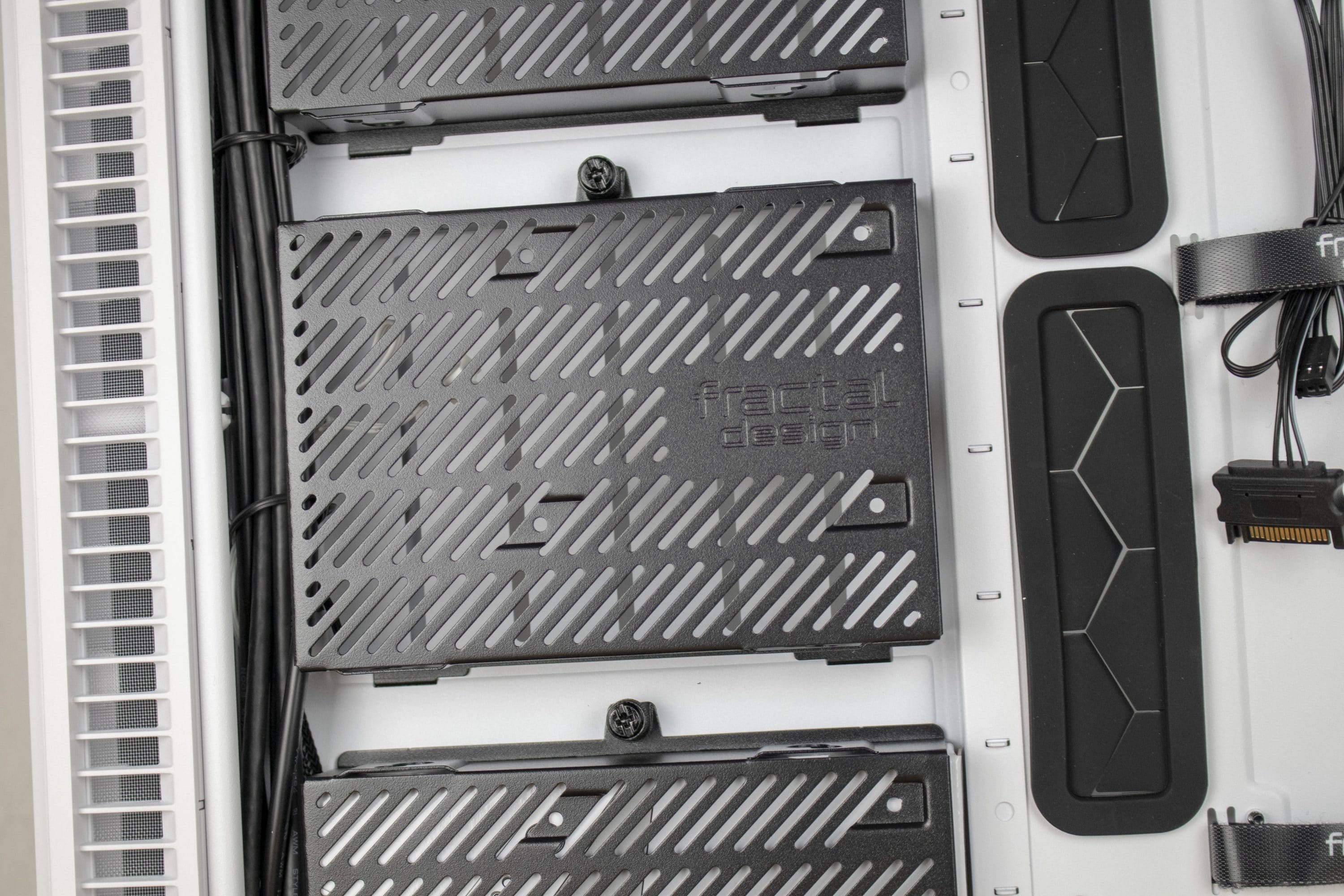 Darüber hinaus finden sich die Montageplätze für Festplatten nun hinter dem Mainboard-Tray sowie auf der Blende im Innenraum, was dazu führt, dass der Bereich direkt hinter der Front freibleibt. Auf HDD-Käfige und einen 5,25-Zoll-Steckplatz wird gänzlich verzichtet. Das dadurch geschaffene Platzangebot lässt sich für eine flexible Radiatormontage und/oder für das Anbringen einer Pumpe oder anderer Hardware nutzen.