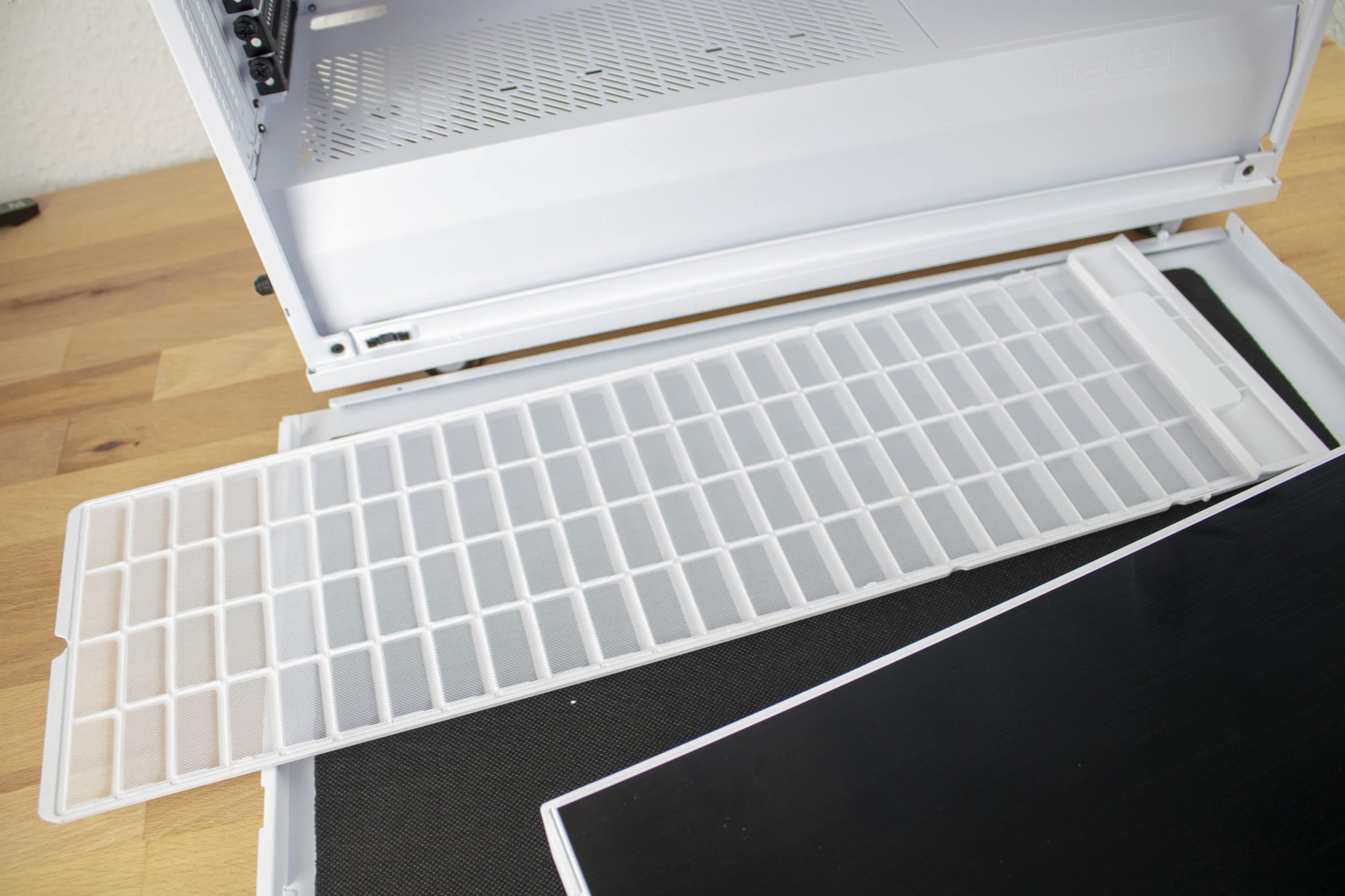 Die verarbeiteten Materialien sind gewohnt hochwertig. Fractal Design kann es sich bei einem Preis, der weit über dem des Vorgängers liegt, auch nicht leisten, bei der Verarbeitung Kompromisse einzugehen. Vor allem die nun ohne größeren Aufwand zu öffnende Glasscheibe fällt positiv auf. Hier hat der Hersteller gezeigt, dass er an den Kritikpunkten des Vorgängers gearbeitet hat.