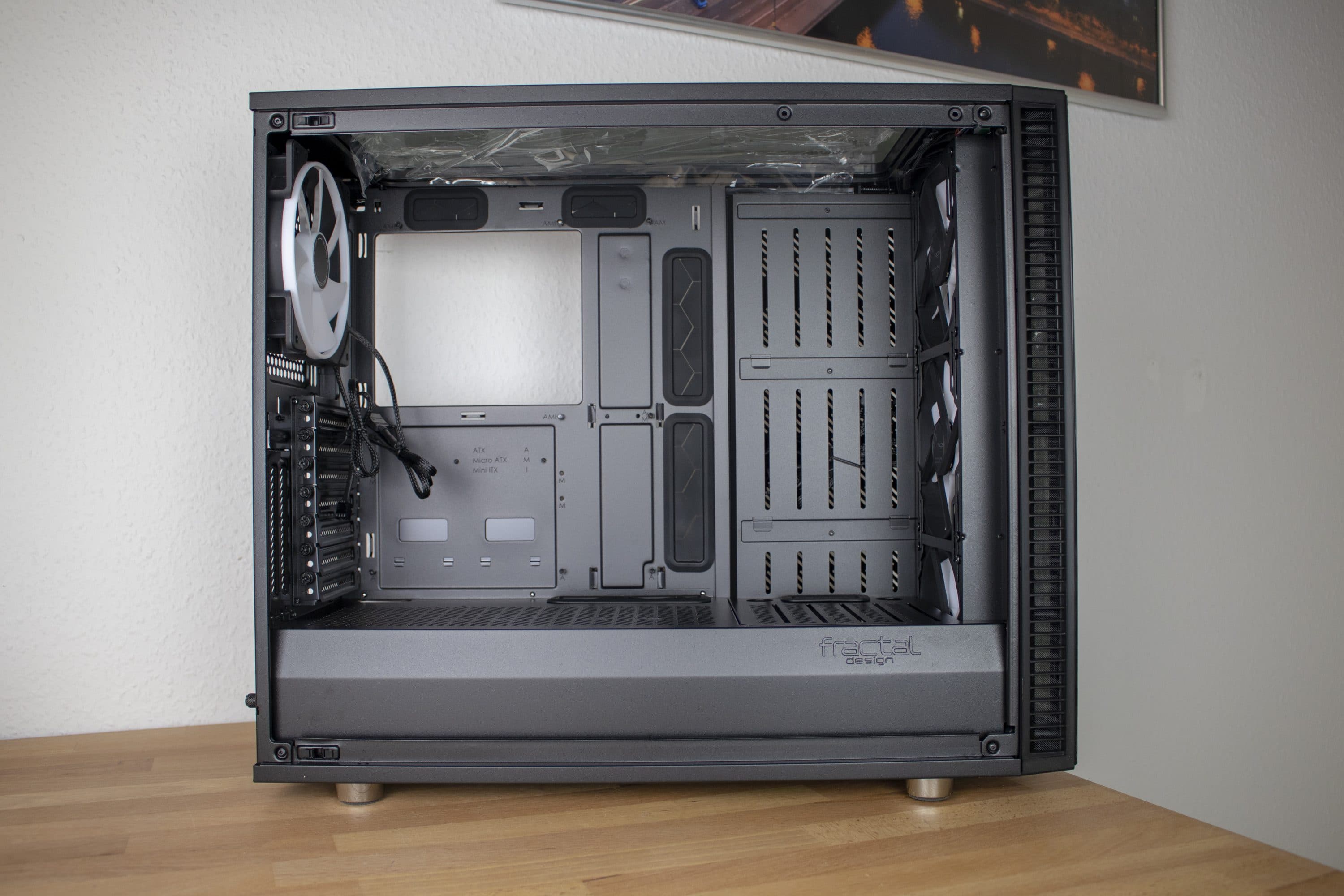 Ist das Gehäuse erst einmal ausgepackt, beginnt das große Staunen. Man erkennt kaum, dass es sich um ein Produkt von Fractal Design handelt. Vor einigen Jahren setzte sich unter den Gehäuseherstellern die Meinung durch, Einsicht in den Innenraum sei erstrebenswert. Geboren war diese Meinung vermutlich aus der Neugier und Präsentationsfreude der Endkunden – wer ein sehenswertes System mit Leuchteffekten und toller Hardware aufbaut, will es schließlich nicht hinter undurchsehbaren Wänden einkerkern. Sichtfenster wurden zum Standard und sind aus den genannten Gründen bis heute außerordentlich beliebt.