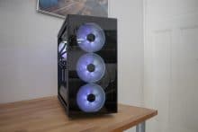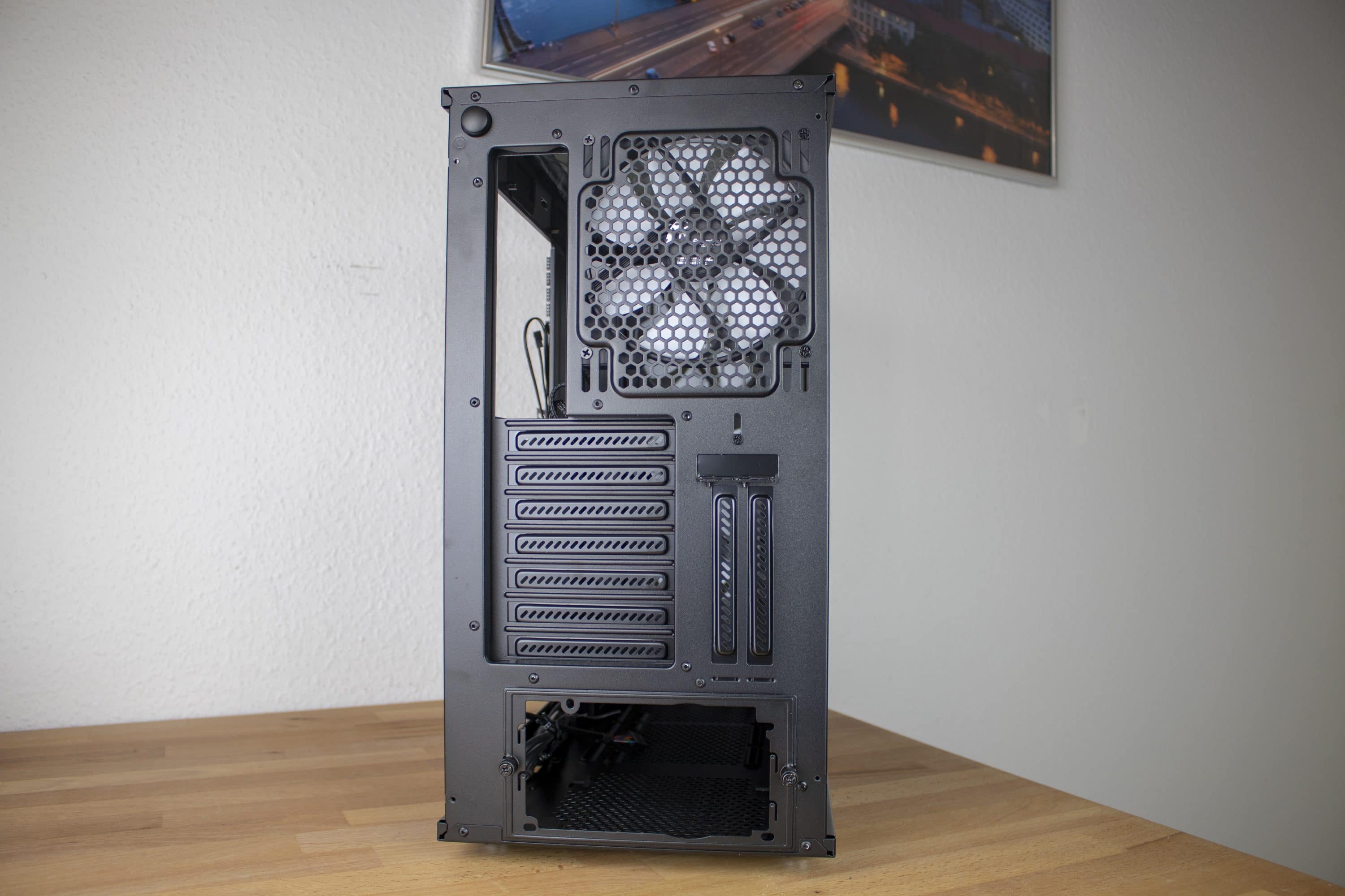 In unserem Test gelang es uns problemlos, Hardware anzubringen. Das Gehäuse bietet sehr großzügigen Platz, was nicht nur bei der Hardwareauswahl sehr viel Freiheit ermöglicht, sondern auch die Montage erheblich erleichtert. Im Zuge dessen ist uns auch das sehr einfache Öffnen und Verschließen der Seitenteile positiv aufgefallen. Das Anbringen bzw. Lösen von Schrauben ist hier zu keinem Zeitpunkt nötig.