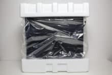 Das Montagezubehör verstaut Fractal Design in einer kleinen Schachtel, die im HDD-Käfig im Inneren des Gehäuses platziert wurde. Diese beinhaltet einen Beutel mit allen notwendigen Schrauben sowie einigen Kabelbindern, eine ausführlichen Montageanleitung, eine Karte mit Garantieinformationen sowie ein Mikrofasertuch. Außerdem gehören zum mitgelieferten Zubehör drei vorinstallierte Staubfilter und zwei vorinstallierte Gehäuselüfter.