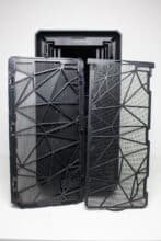Fractal Design verpackt das Meshify 2 Mini in einem Karton aus einfacher, brauner Pappe. Zusätzlich wurden mit schwarzer Farbe technische Zeichnungen, elementare Features und alle technischen Daten auf die Außenhülle des Kartons gedruckt. Innerhalb der Verpackung verwendet der Hersteller zwei Blöcke aus herkömmlichen Styropor sowie eine Schutzfolie, um den Mini-Tower vor Beschädigungen durch den Transport zu schützen.