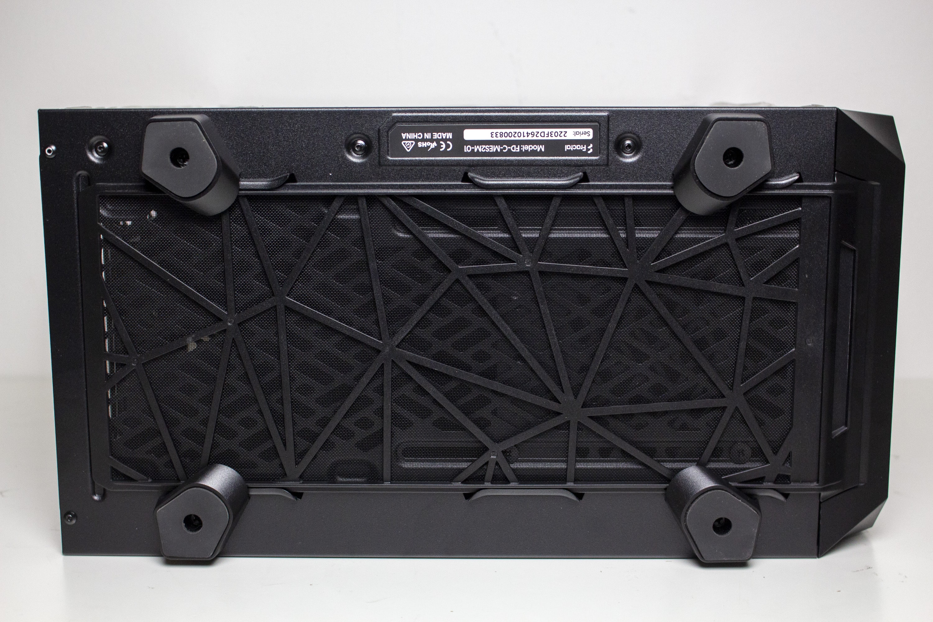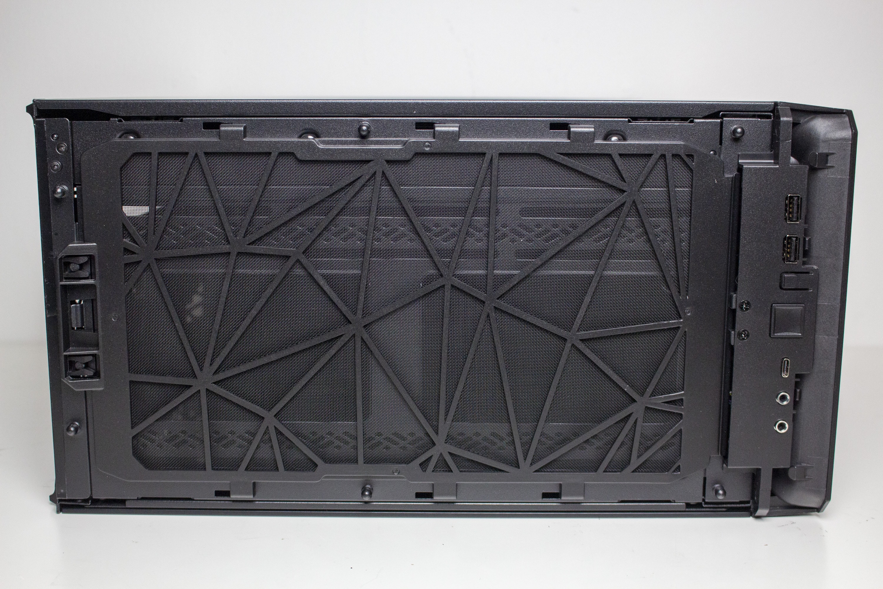 Die Unterseite des Meshify 2 Mini wird durch einen riesigen Staubfilter aus einem feinem Netzstoff dominiert, der sich zur Reinigung einfach nach vorne entfernen lässt. Er soll die Luft für das Netzteil sowie einen optionalen 120-mm-Lüfter im Boden filtern, welchen man montieren kann, wenn der modulare HDD-Käfig entfernt wird.