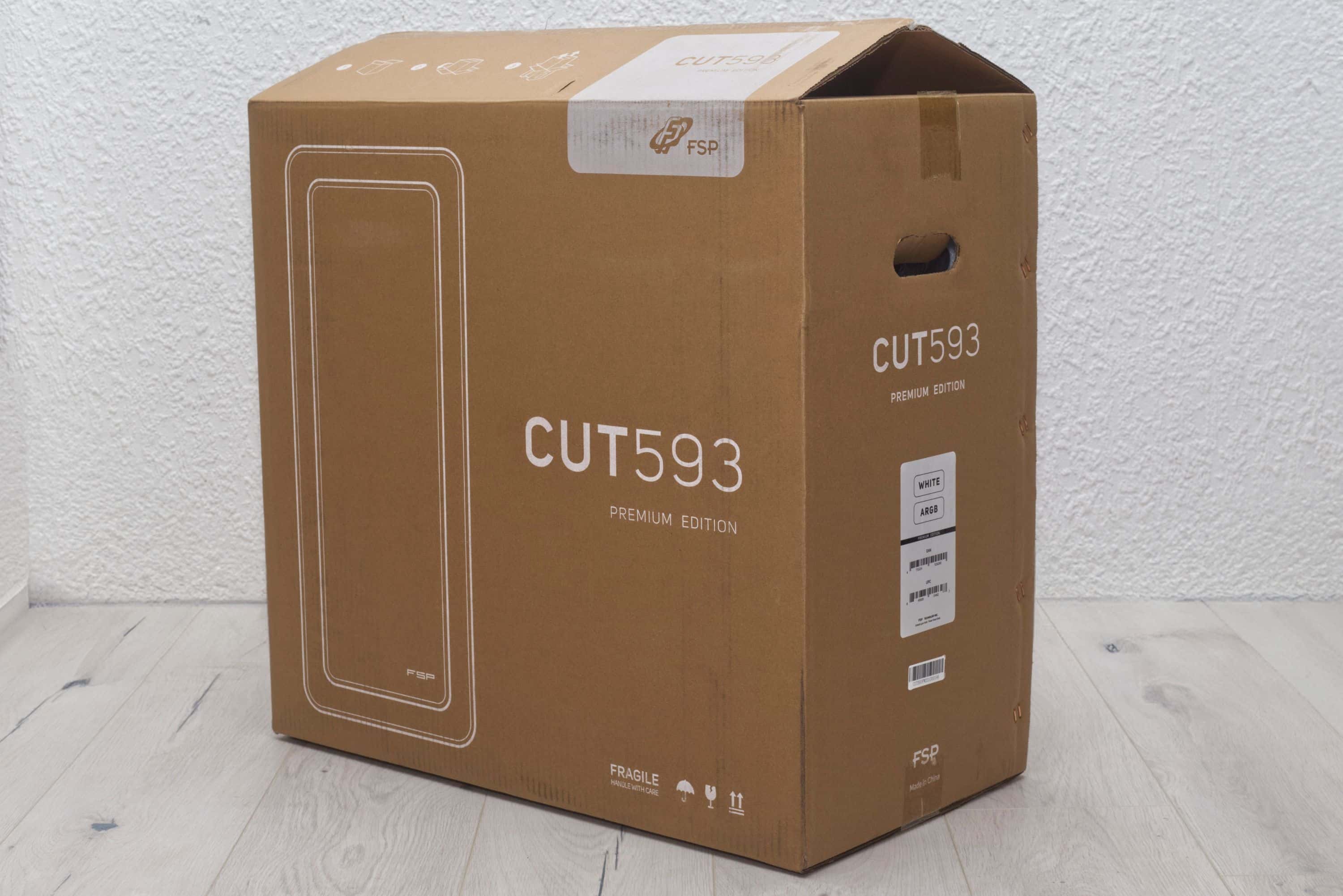Hinweis: Es gibt das FSP CUT593 in unterschiedlichen Ausstattungen. Es gibt das reguläre CUT593 ohne RGB, das CUT593A mit vier ARGB-Lüftern und das CUT593P mit RGB und einem besonderen Kabelmanagement. Hier im FSP CUT593P Test kommt die Premium Edition zum Einsatz.