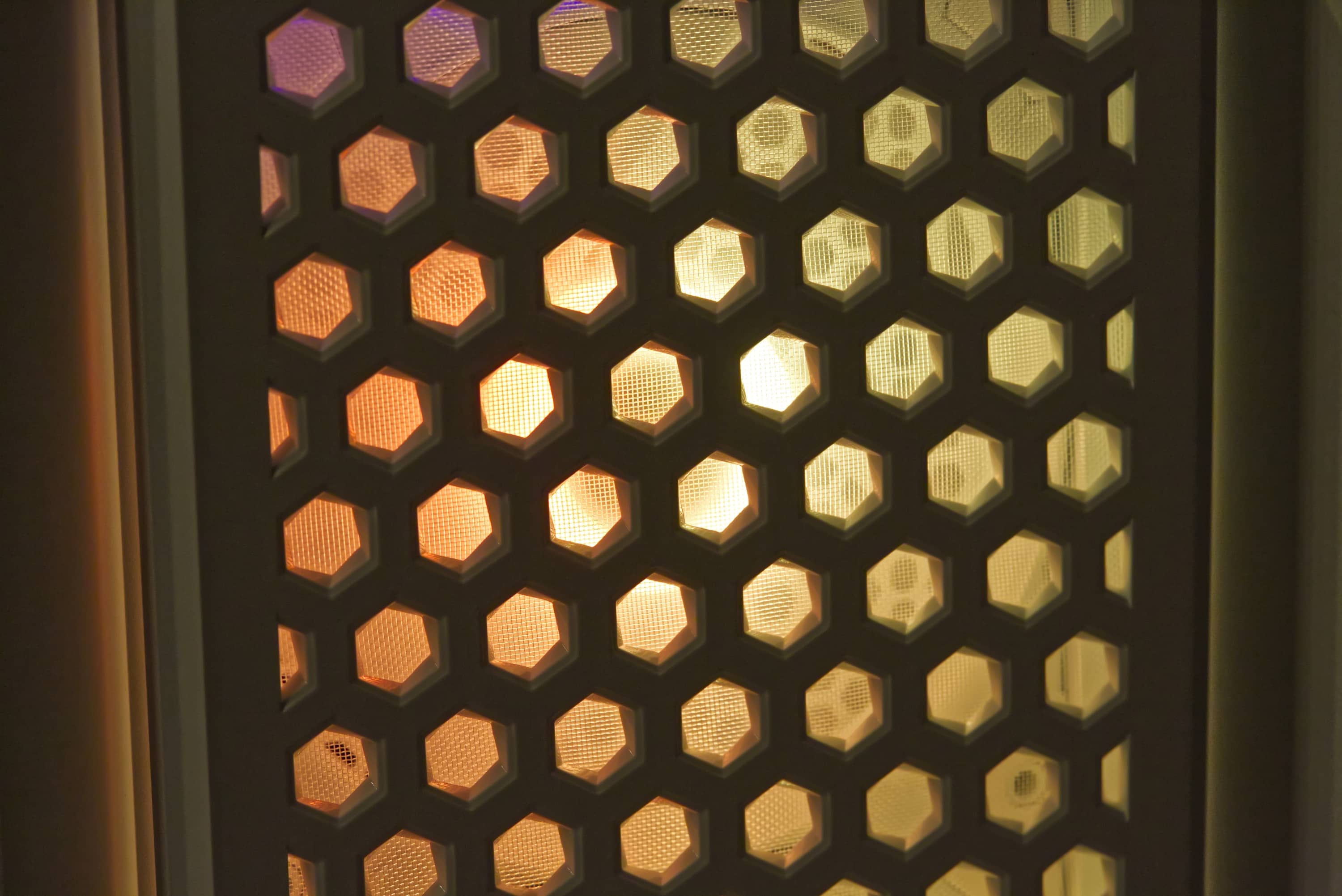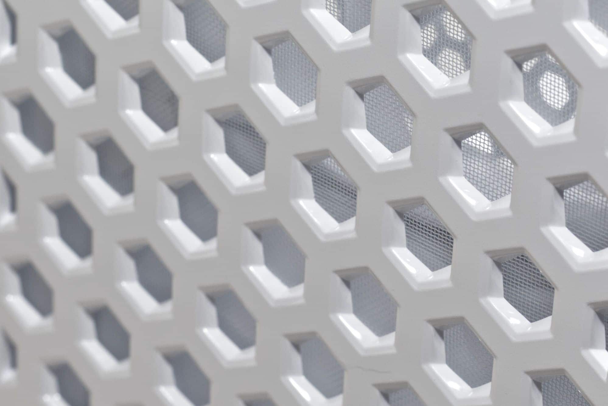 Die Front bietet große Löcher, die ein wenig die Geister scheiden. Mir persönlich gefällt das Design so sehr gut. Meine Frau fand sich an den Look von Rückenlehnen von Plastik-Gartenstühlen erinnert. Alternativ gibt es eine engmaschigere Front aus Metall im Lieferumfang, die ein bisschen weniger plakativ wirkt.