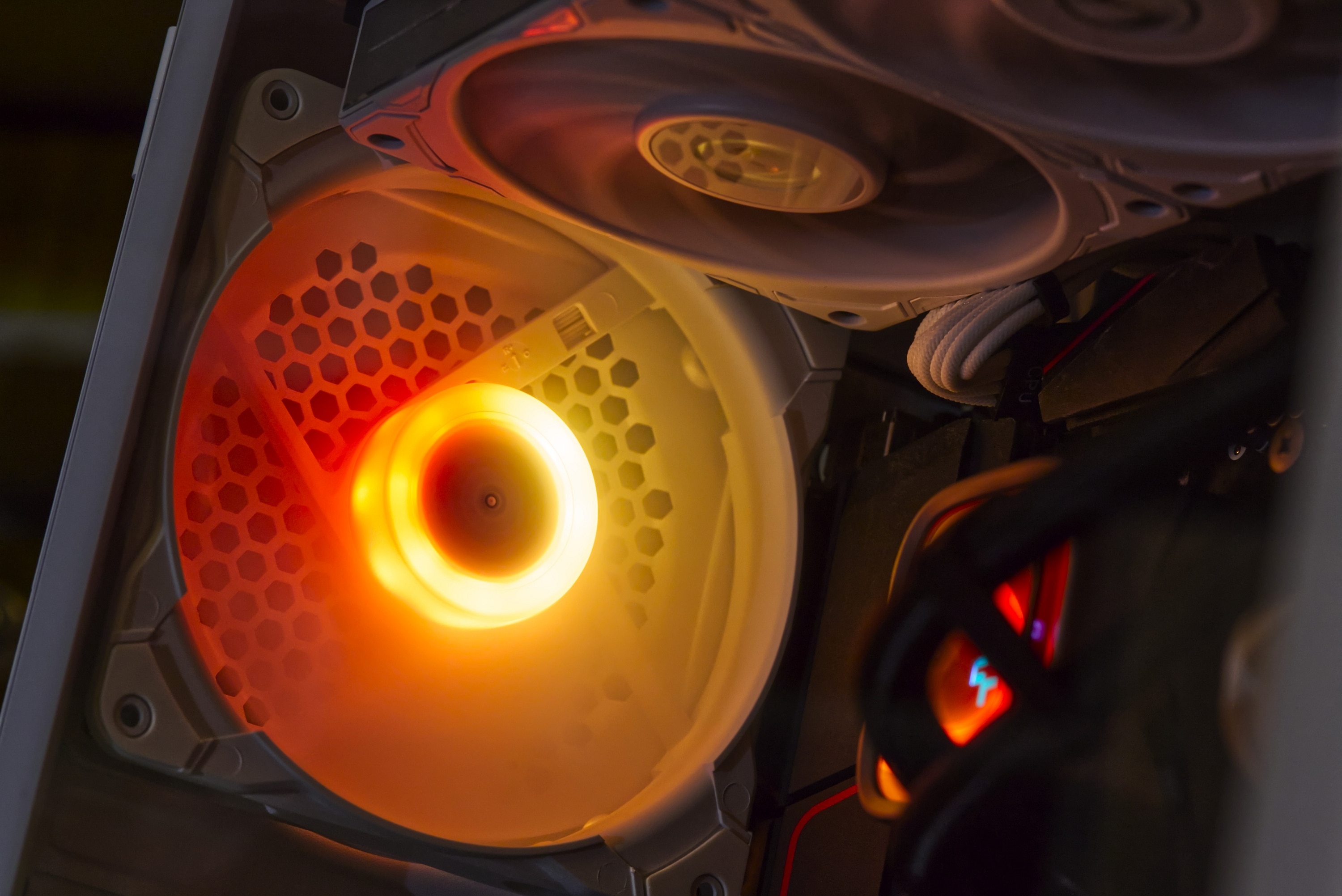 Die Lüfter im FSP erinnern an die untere Mittelklasse. Die Beleuchtung ist durchaus schön und auch leise können sie eine gute Menge Luft bewegen. Die Auflageflächen sind zur Reduktion von Vibrationen gummiert und die Qualität des Rahmenmaterials ist durchaus in Ordnung. Selbst die Abstände der Lüfterblätter zum Rahmen wirken nicht übermäßig groß. Kurzum: Mit den Lüftern bin ich durchaus zufrieden. Klar – angeschlossen werden sie über ein 3-Pin-Kabel. Das bedeutet, dass sie spannungsgesteuert sind und nicht über PWM kontrolliert werden können. Für die meisten Mainboards stellt das jedoch kein Problem dar, wenn auch je nach Hersteller eine entsprechende Steuerung im BIOS ausgewählt werden muss.