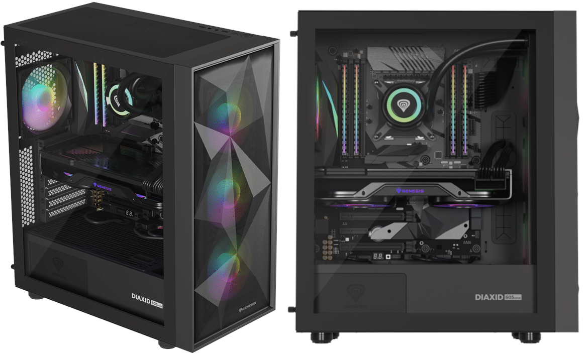 Hinter dem Namen Genesis verbirgt sich ein polnischer Hersteller von PC-Komponenten. Nach der Gründung im Jahre 2011 lag der Hauptfokus des Herstellers zunächst auf Gaming-Komponenten wie z. B. Eingabegeräten, PC-Zubehör und Audio-Geräten. Mittlerweile gehören aber auch einige Gehäuse zum Portfolio des Herstellers. Dieses wurde kürzlich um die Serie Diaxid 605 erweitert. Sowohl das GENESIS Diaxid 605F als auch das GENESIS Diaxid 605 ARGB haben wir heute für euch im Test.