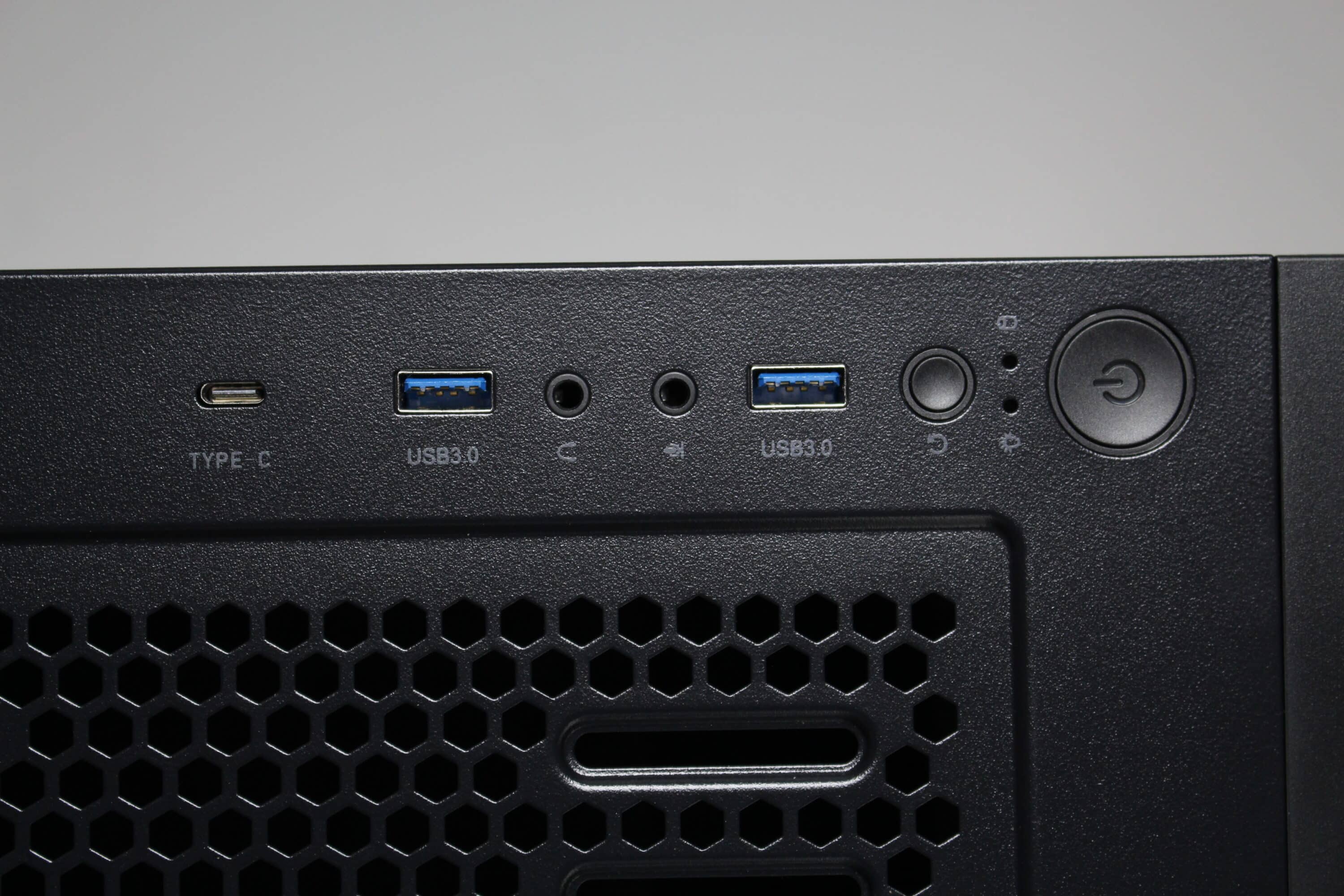 Im Deckel bleibt die Gestaltung luftig. GENESIS stattet diesen nämlich mit einem großen Lüftergitter aus, das ebenfalls Montagepunkte für zwei 120-mm- oder zwei 140-mm-Lüfter bietet. Außerdem wurde darüber eine magnetische Staubfiltermatte aus Mesh befestigt. Die Magnethalterung erleichtert den Ausbau und die Reinigung dabei deutlich. Ebenfalls im Deckel ist das I/O-Panel zu finden. Dieses verfügt über drei USB-Ports (1x USB 3.1 Gen 2 Typ-C, 2x USB 3.0 Typ-A), zwei Buchsen für Kopfhörer bzw. Mikrofon sowie zwei Taster für Power und Reset. Weiterhin verbaut GENESIS auch eine Power- bzw. HDD-Aktivitäts-LED.
