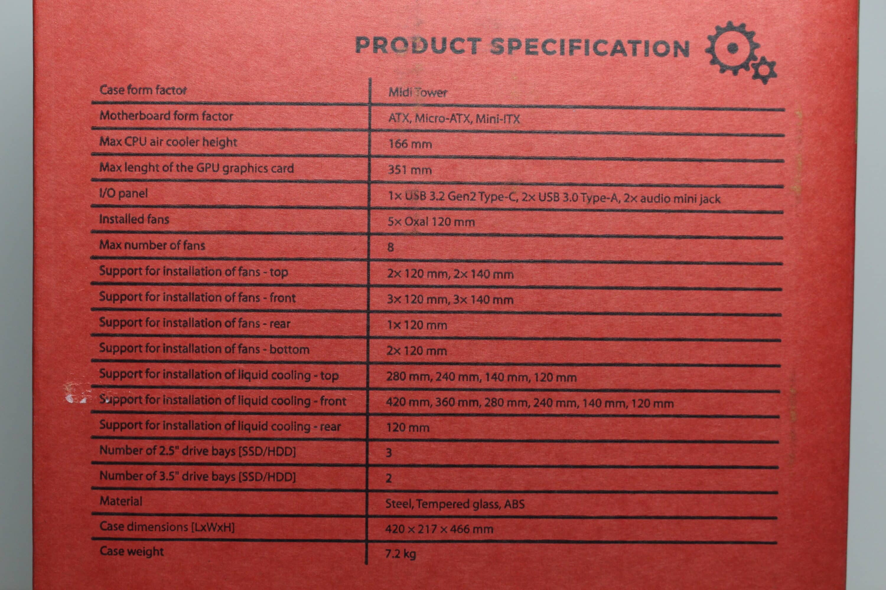 | Radiatoren: | Front: 1x 240/ 280/ 360/ 420 mm Heck: 1x 120 mm Deckel: 1x 240/ 280 mm |
