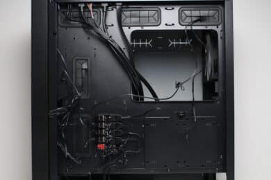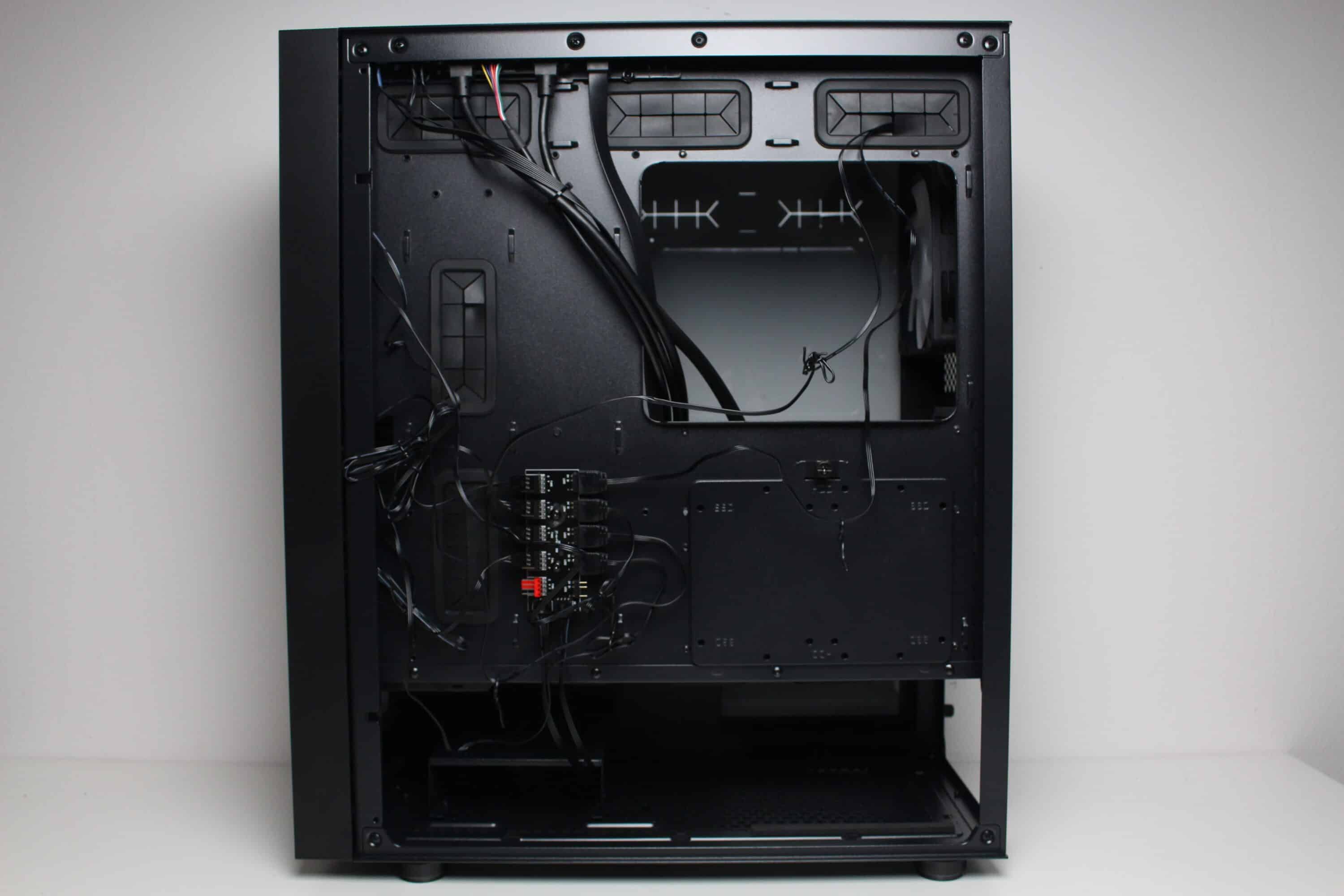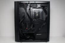 Der Einbau und die Verkabelung aller Komponenten funktionierte problemlos und war schnell erledigt. In der Hauptkammer gibt es sehr viel Platz zum Arbeiten und auch hinter dem Mainboard-Tray ist ausreichend Raum zum Verlegen bzw. Verzurren der Kabel vorhanden. Besonders hilfreich waren hier die hohe Anzahl an Ösen für Kabelbinder. Außerdem sparen die vorinstallierten Abstandshalter zusätzlich Zeit bei der Montage. Das vollständig montierte Testsystem sieht aufgrund der sinnvoll platzierten Kabelmanagementöffnungen gut aus und kann sich hervorragend präsentieren.