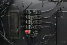 Kommen wir nun aber einmal zu den Unterschieden zwischen den zwei Varianten. Grundsätzlich teilen sich das Diaxid 605 ARGB und das Diaxid 605F einen Korpus mit identischem Grundaufbau. Einziger Unterschied zwischen den zwei Varianten ist, dass das Diaxid 605 ARGB ab Werk mit vier 120-mm-ARGB-Lüftern und das Diaxid 605F stattdessen werksseitig mit fünf schwarzen, unbeleuchteten 120-mm-Lüftern daherkommt. In beiden Fällen verbaut GENESIS jedoch die PWM- und ARGB-Steuerplatine. Somit kann also auch das GENESIS Diaxid 605F problemlos auf eine ARGB-Beleuchtung umgebaut werden.