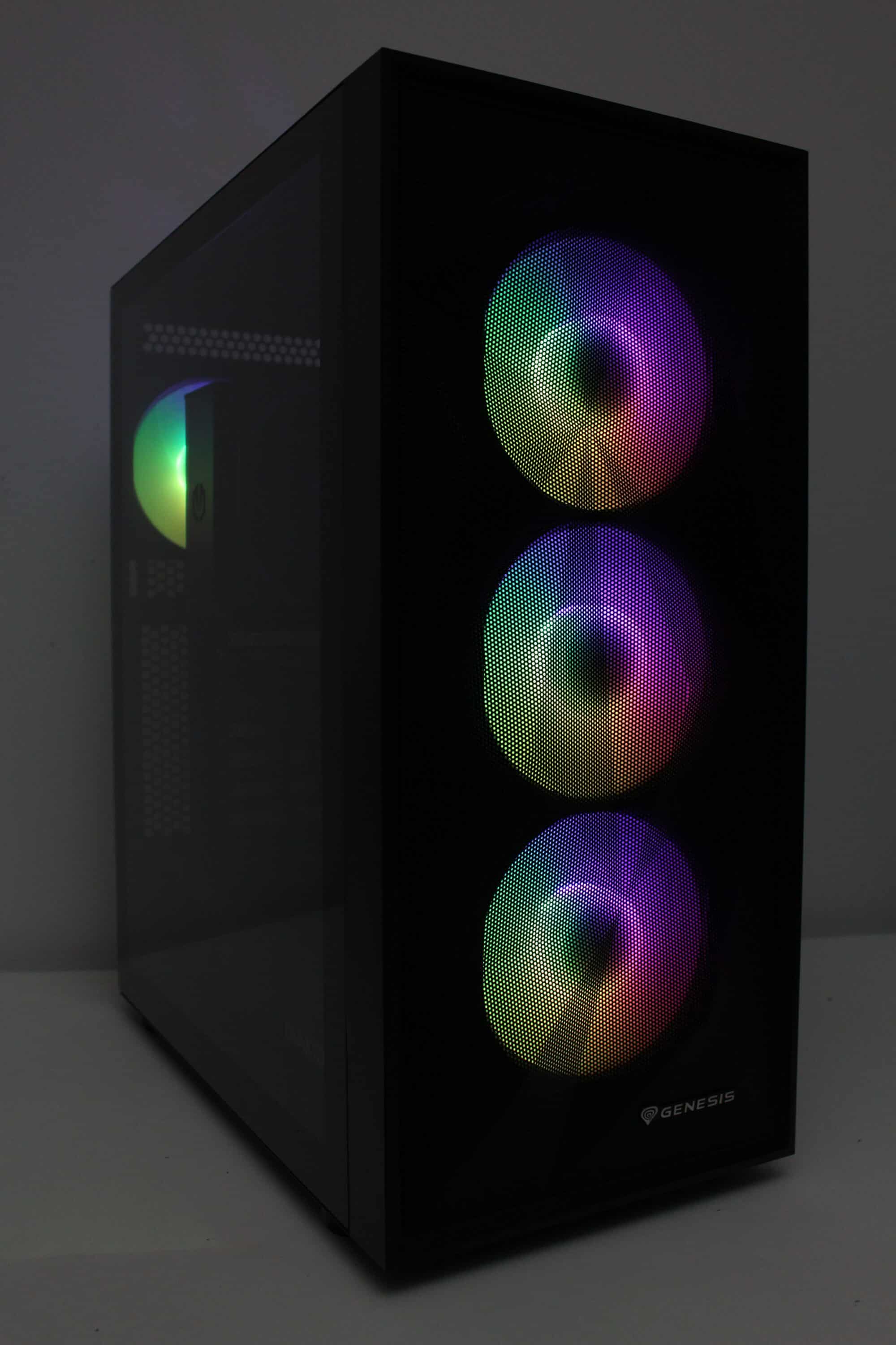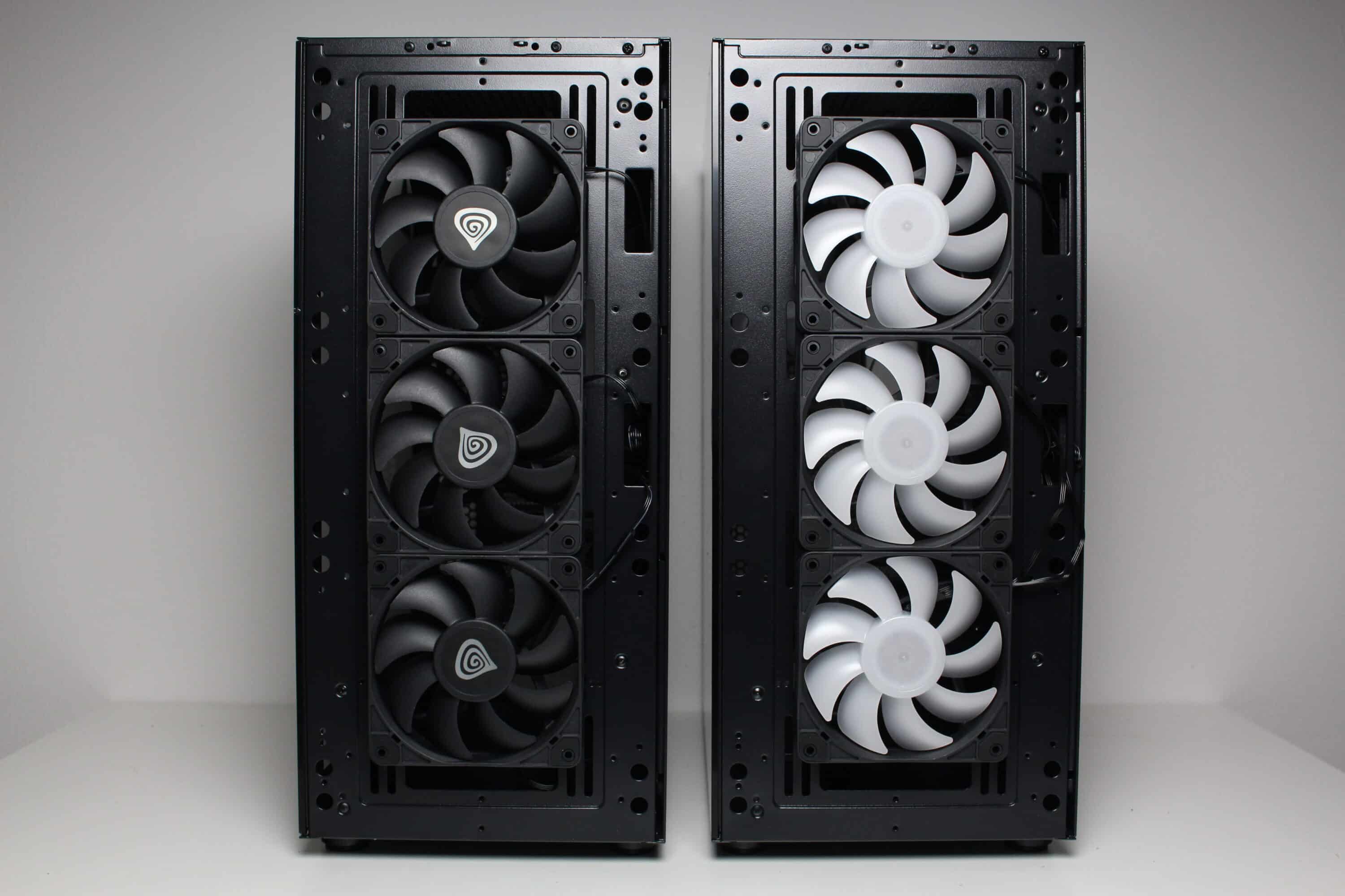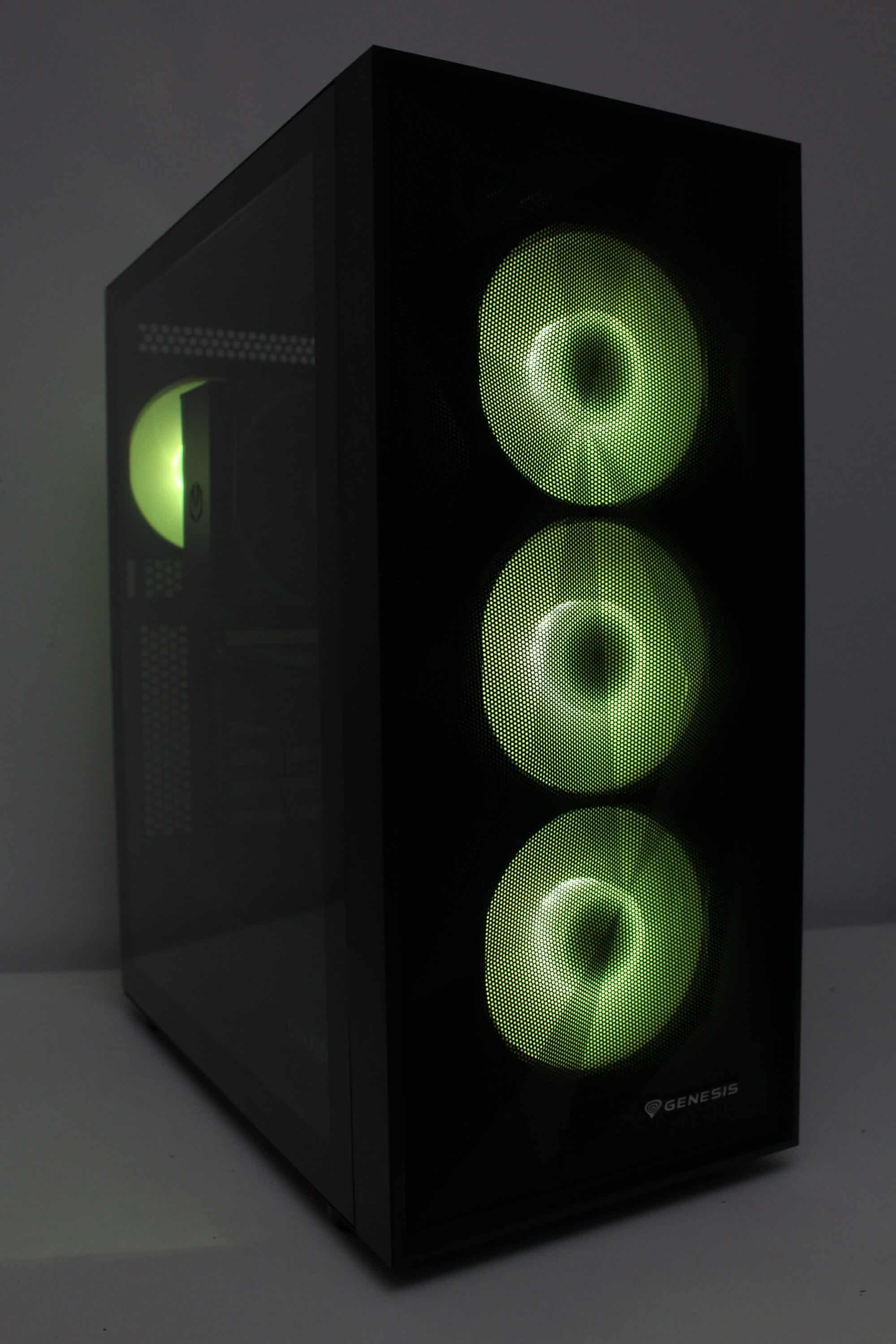 Bei voller Drehzahl sind die Lüfter allerdings sehr deutlich aus dem System herauszuhören. Wir haben zwar schon lautere Exemplare gehört, für Silent-Systeme sollte man die Lüfter aber definitiv drosseln. Bei Minimaldrehzahl sind die Lüfter hingegen kaum bis gar nicht mehr wahrnehmbar. Störend sind dann jedoch vereinzelte Schleifgeräusche der Lüfterlager. Negativ ist außerdem aufgefallen, dass unser Mainboard die an der PWM-Steuerung angeschlossenen 3-Pin-Lüfter nicht vernünftig ansprechen konnte. Hätte GENESIS direkt 4-Pin-PWM-Lüfter verbaut, dann wäre das Problem vermutlich nicht aufgetreten.