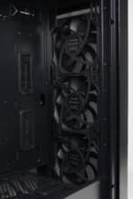 Negative Aspekte gibt es aber dennoch bei beiden Versionen. So verbaut GENESIS immer nur 3-Pin-Lüfter. Das hat bei uns dazu geführt, dass wir die Lüfter mit der PWM-Platine nicht über das Mainboard ansteuern konnten. Dadurch wird die Platine unbrauchbar und zu einem unnötigen Kostenfaktor. Zudem sind bei bestimmten Geschwindigkeiten sowohl bei den schwarzen als auch den beleuchteten Lüftern deutliche Lagergeräusche hörbar. Zuletzt sorgt die etwas geringere Tiefe des Diaxid 605 dafür, dass Grafikkarten maximal 351 Millimeter lang sein dürfen, wenn man in der Front keinen Radiator platziert. Mit Radiator passen viele High-End-Karten leider einfach nicht mehr in diesen Midi-Tower.