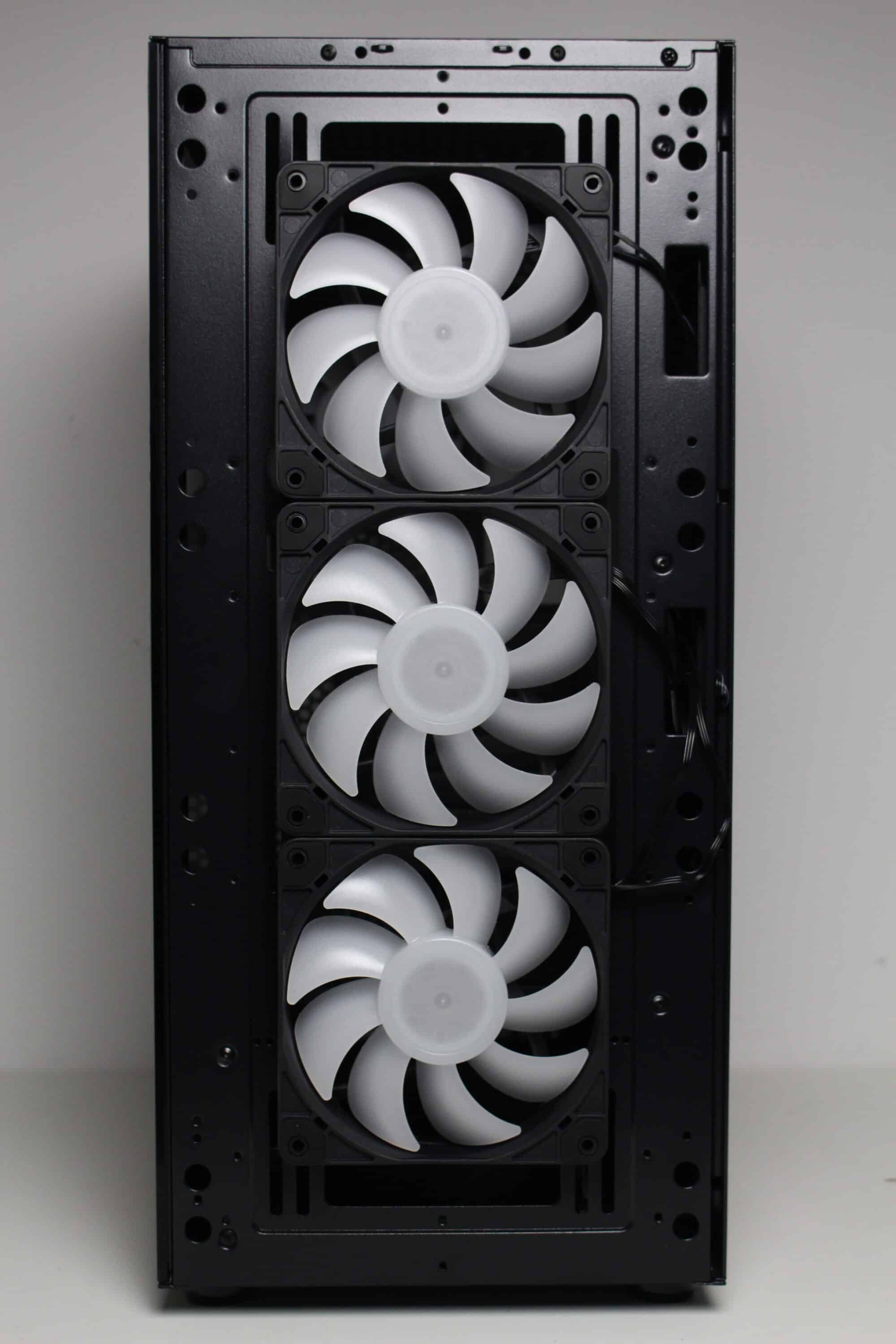Front: 3x 120/ 140 mm Heck: 1x 120 mm Deckel: 2x 120 / 140 mm Boden: 2x 120 mm |