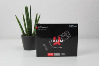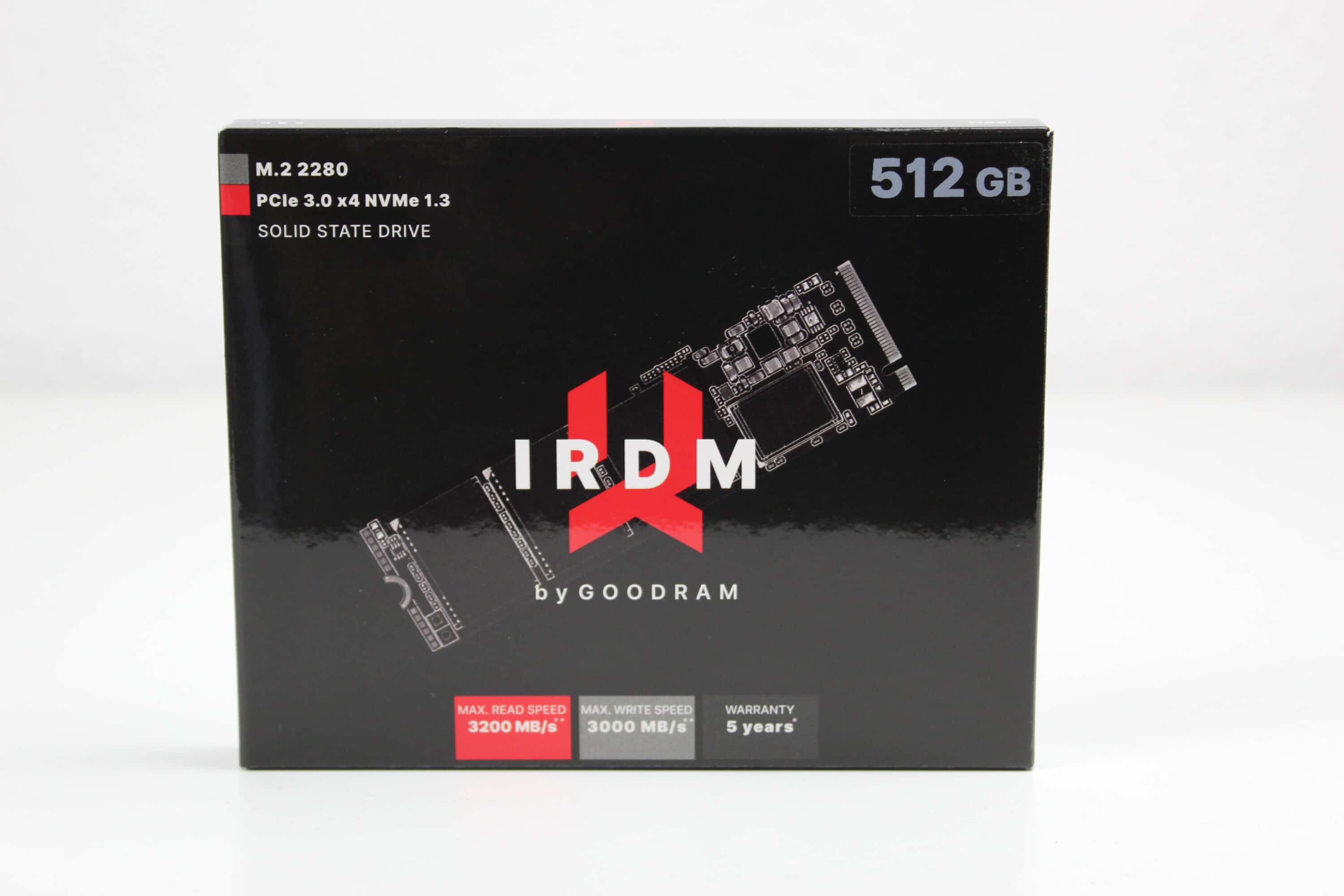 Die Verpackung ist recht schlicht gehalten – ein schwarzer Karton, bedruckt mit dem IRDM-Logo, der SSD und einigen technischen Daten.