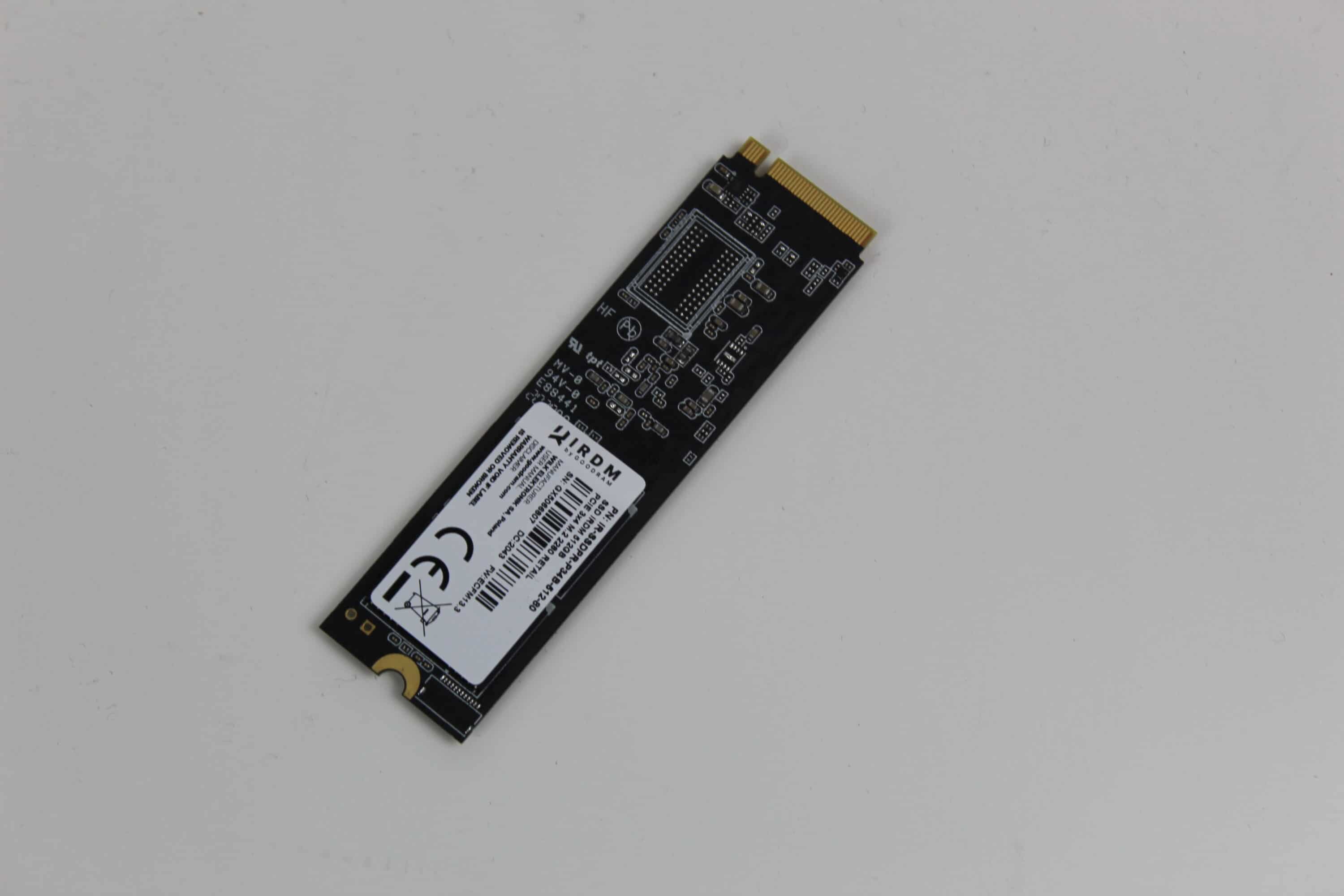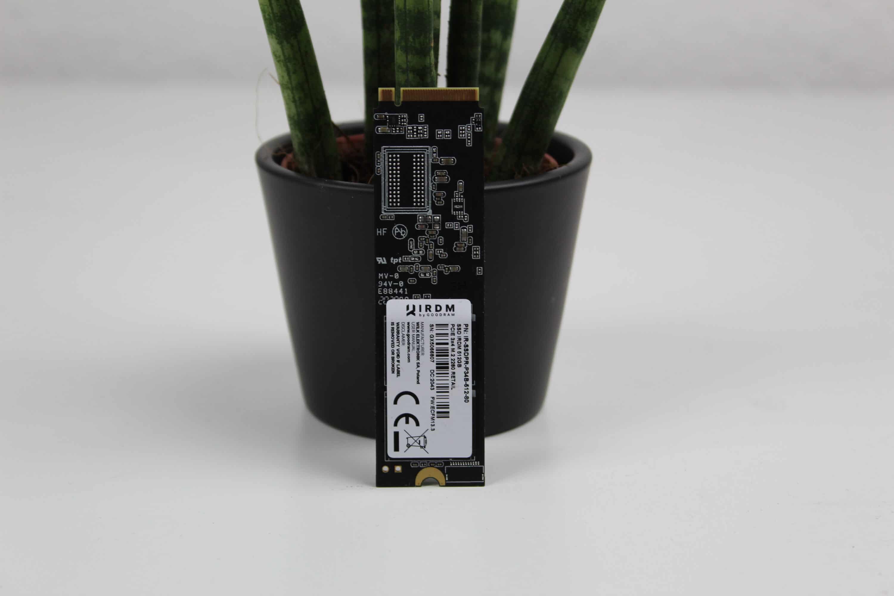 Im Karton befindet sich die SSD – nicht mehr und nicht weniger. Auf den meisten M.2 SSDs befindet sich entweder ein Kühlkörper oder ein Aufkleber – hier ist man eine Art Zwischenweg gegangen – auf der SSD befindet sich eine Metallplatte als „Heatspreader“ – optisch macht dies auf jeden Fall etwas her. Auf diesem ist erneut das IRDM-Logo inkl. Schriftzug sichtbar.