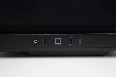 Dominiert wird das Äußere des HYTE Y40 durch viel Glas und Paneele mit großen, linienförmigen Belüftungsöffnungen. So besteht die Front aus Hartglas, welches leicht abgedunkelt und oben sowie unten vom Stahlrahmen des Korpus eingefasst wurde. Bei Bedarf lässt sich das Frontpanel durch die Entfernung mehrerer Schrauben auch abbauen. Eine Notwendigkeit besteht hierzu aber nicht. Außerdem platziert HYTE das I/O-Panel in der unteren Frontpartie. Vorhanden sind ein USB 3.1 Typ-C sowie zwei USB 3.0 Typ-A Anschlüsse, ein HD-Audio-Comboport sowie Power-Button, welcher weiß beleuchtet ist.
