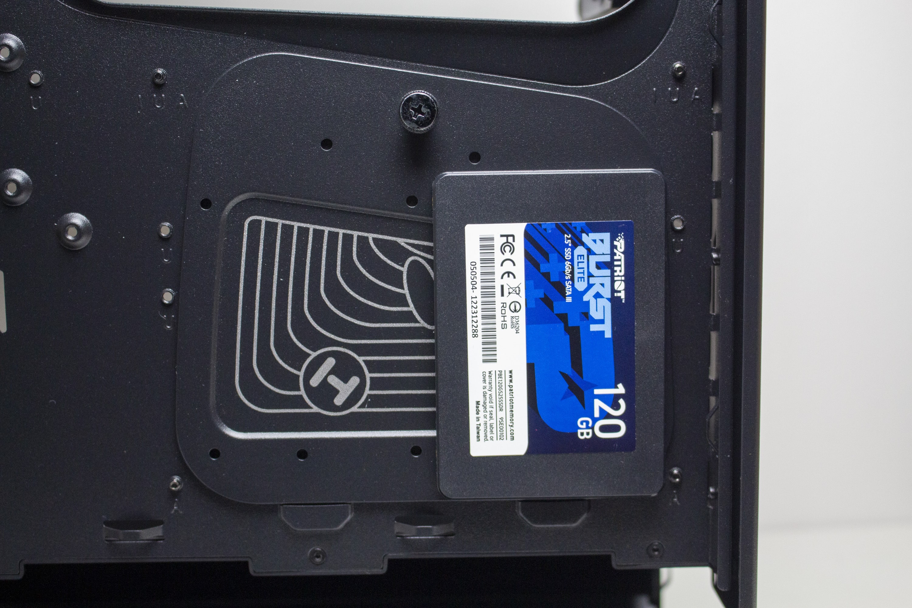 Für Datenträger bietet das HYTE Y40 leider nicht so viel Platz. Auf der interessant gestalteten Montageplatte an der Rückseite des Mainboard-Trays können entweder zwei 2,5″- oder ein 3,5″-Datenträger befestigt werden. Die Montage der Platte erfolgt werkzeuglos, die Arretierung der Datenträger erfordert jedoch die verwendung von Schrauben.