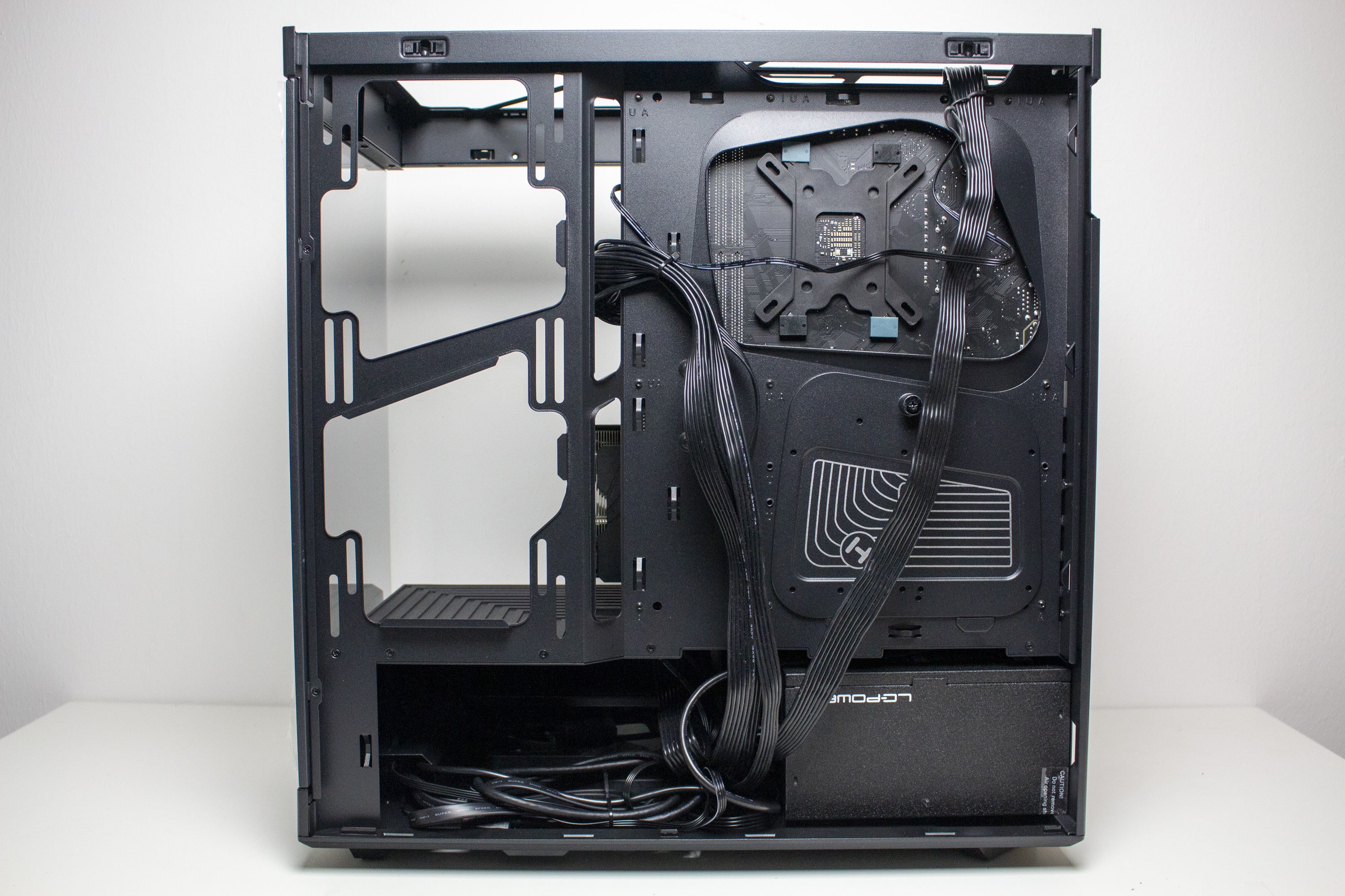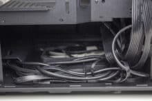 Der Einbau aller Hauptkomponenten und deren Verkabelung waren einfach und schnell erledigt. Sowohl vor als auch dem hinter dem Mainboard-Tray gibt es auch für große Hände genug Raum zum Arbeiten. Zudem sind die 27 Millimeter Platz auf der Rückseite mehr als ausreichend, um auch dickere Kabel problemlos verlegen zu können. Eine kleinere Herausforderung war allerdings das Kabelmanagement in der Netzteilkammer. Durch die Existenz eines Lüfters musste man akkurat dafür sorgen, dass keines der Kabel in den Lüfterblättern hängen bleibt. Gerade bei längeren Netzteilen könnte das schwieriger werden.