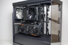 Das Y40 kann aber auch eine Wasserkühlung gut unterbringen. So passen in den Deckel ein 360-mm- und an die Seite ein 280-mm-Radiator, der dazu noch bis zu 120 Millimeter dick sein darf. Bei unserem Exemplar (Enermax AQUAFUSION ADV 360) musste nicht mal der Hecklüfter entfernt werden. Dabei sollte die Kombination aus Radiator und Lüfter im Deckel aber nicht dicker als 52 Millimeter sein.