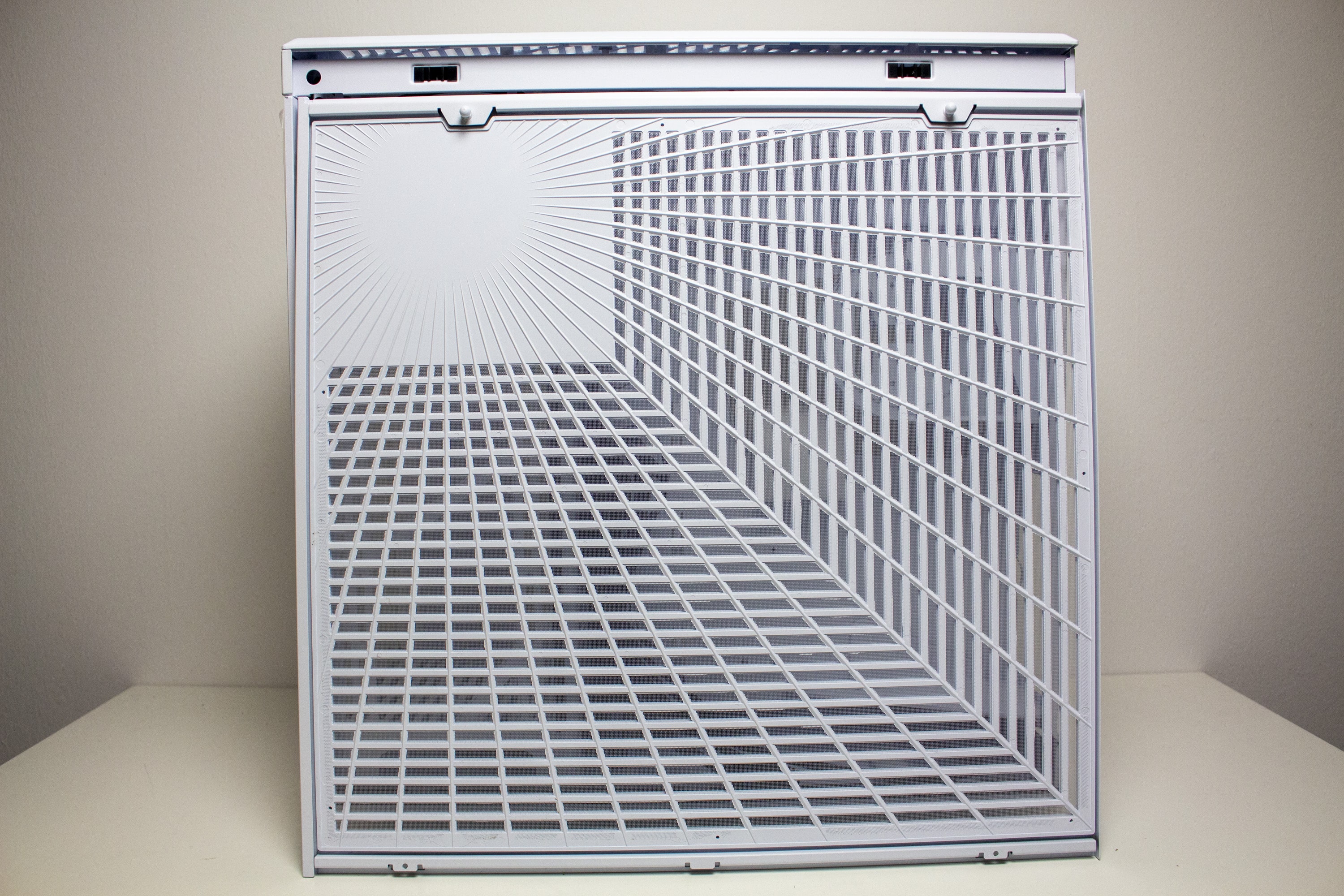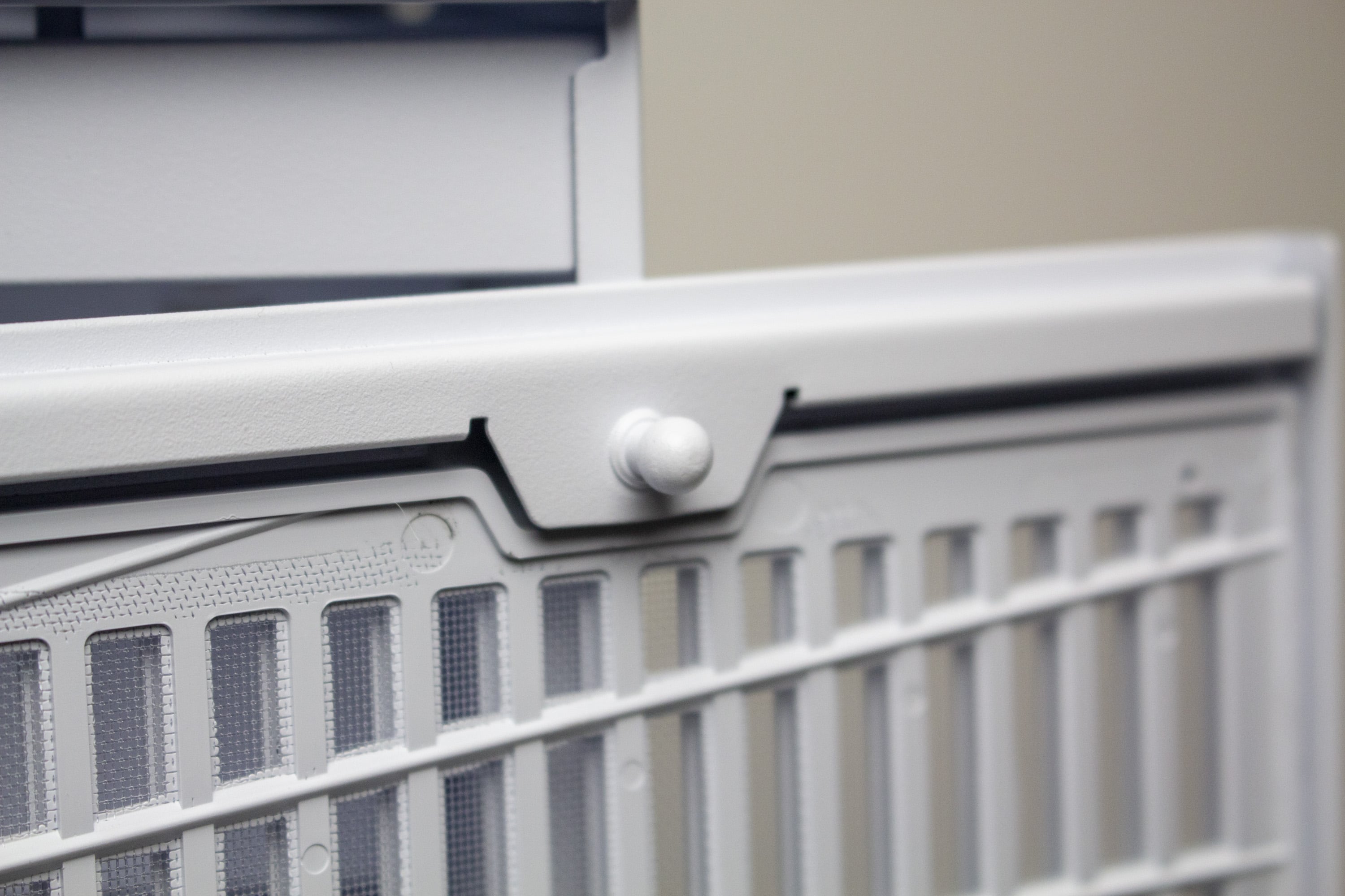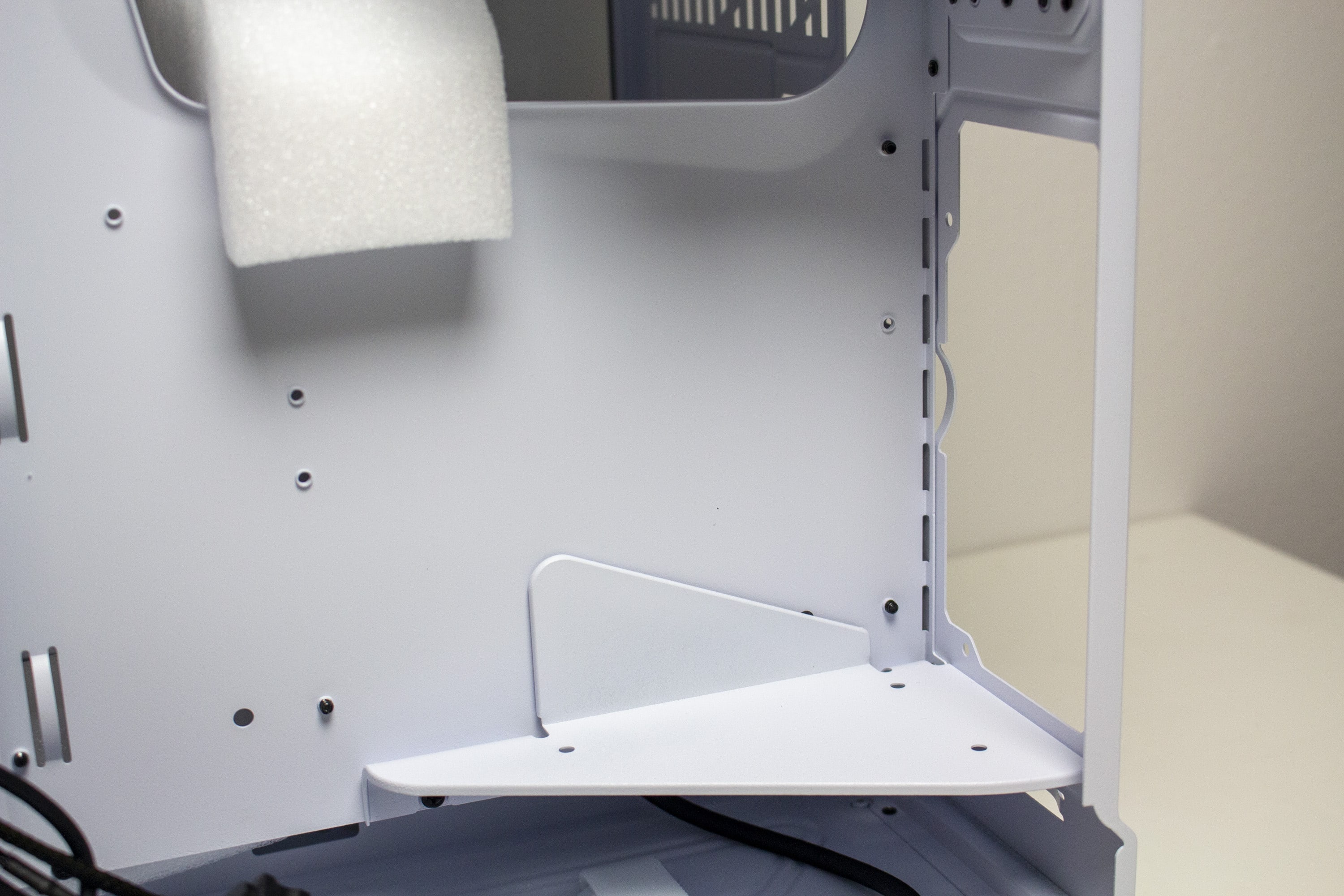Ebenfalls unschön ist erneut der hohe Einsatz von Kunststoff. So wurde sowohl hinter das Seiten- als auch das Top-Panel eine Schicht Kunststoff geklebt, in welche der Staubfilter intergiert wurde. Dadurch erhält das Panel zwar eine etwas höhere Stabilität, wirkt aber weniger wertig und solide als beim Einsatz eines stärkeren Stahlpanels. Beim Top-Panel wurden leider sogar die Push-Pins aus Kunststoff gefertigt und könnten über einen längeren Nutzungszeitraum eventuell eine Schwachstelle darstellen. Darüber hinaus besteht auch der gesamte untere Bereich des Innenraums aus Kunststoff.