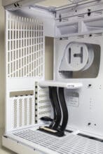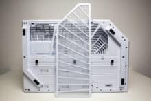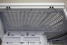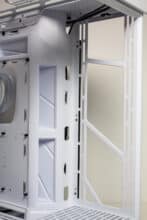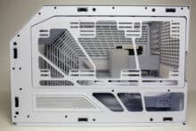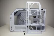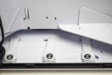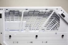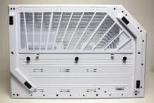 Die Verarbeitungsqualität des HYTE Y70 Touch ist grundsätzlich gut. Die verwendeten Materialien (Stahl, Glas, Kunststoff) fühlen sich größtenteils wertig an und wirken stabil. Anders sieht es da bei der Lackierungsqualität aus. Bei näherer Betrachtung haben wir Bauteile gefunden, die nicht ganz sauber lackiert wurden. Dazu gehörten z.B. die Lüfterrahmen im Boden und im Deckel oder die HDD-Schlitten. Das sind zwar Bereiche, die man beim fertigen System sowieso nicht sieht, trotzdem sollte das bei einem Gehäuse dieser Preisklasse nicht passieren. Dafür sind die Farbunterschiede der Weiß-Töne bei Stahl und Kunststoff sehr gering und fallen kaum auf.
