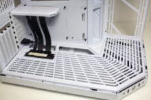 Negative Punkte sind uns aber leider auch ein paar aufgefallen. Ein Kritikpunkt ist sicherlich wieder der Einsatz einiger Kunststoffelemente, deren Qualität zwar nicht schlecht ist, mit der besseren Haptik und Optik von Stahl und Aluminium aber nicht mithalten kann. Ohne Kunststoff an manchen Bauteilen, wäre deren Verwindungssteifigkeit zudem zu gering. Außerdem wirkt sich die Panelkonstruktion mit Kunststoff und integriertem Staubfilter, wie auch schon beim HYTE Y60, restriktiv auf den Airflow aus. Des Weiteren gab es bei unserem Sample vereinzelt Mängel im Bereich der Lackierung und die völlige Abwesenheit von Gehäuselüftern treibt sowohl die Temperaturen als auch den Kaufpreis weiter in die Höhe.